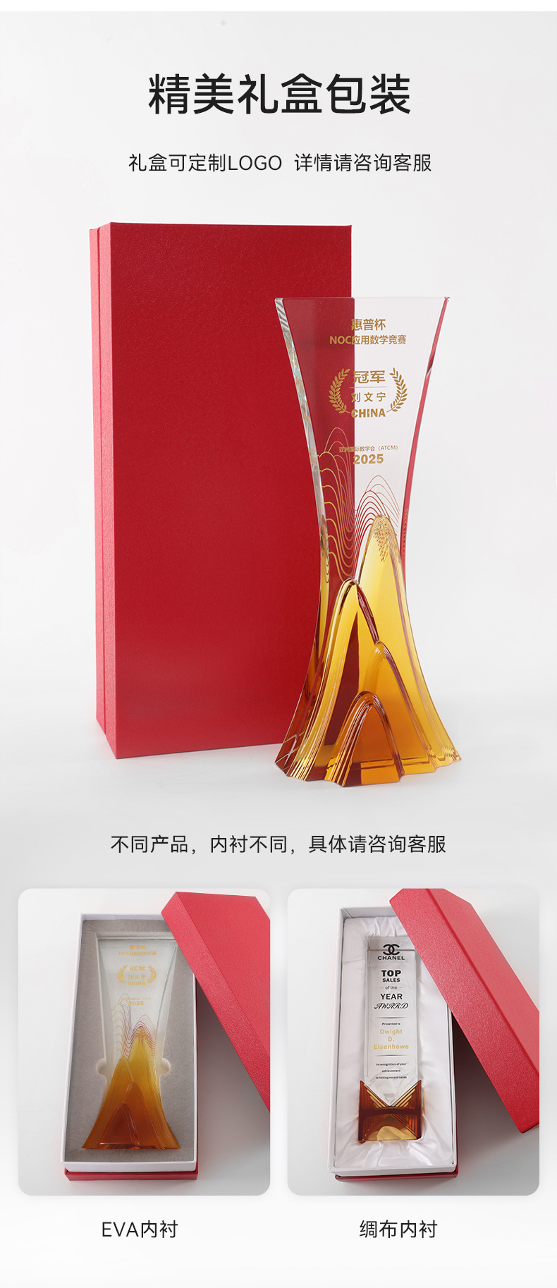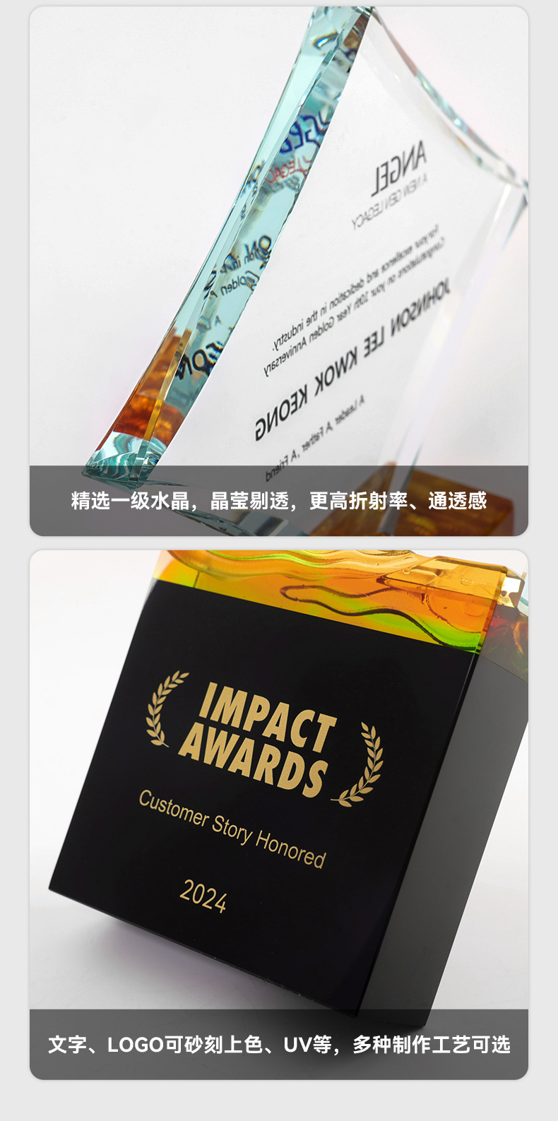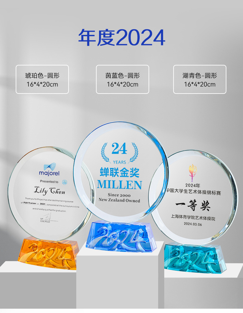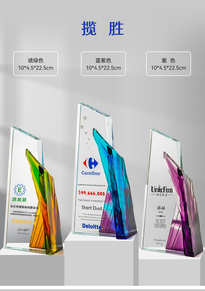 水晶琉璃奖杯定制定做高档大气企业年度优秀员工颁奖纪念订制订做