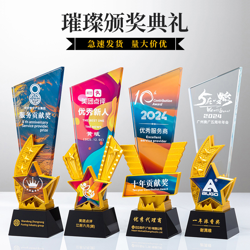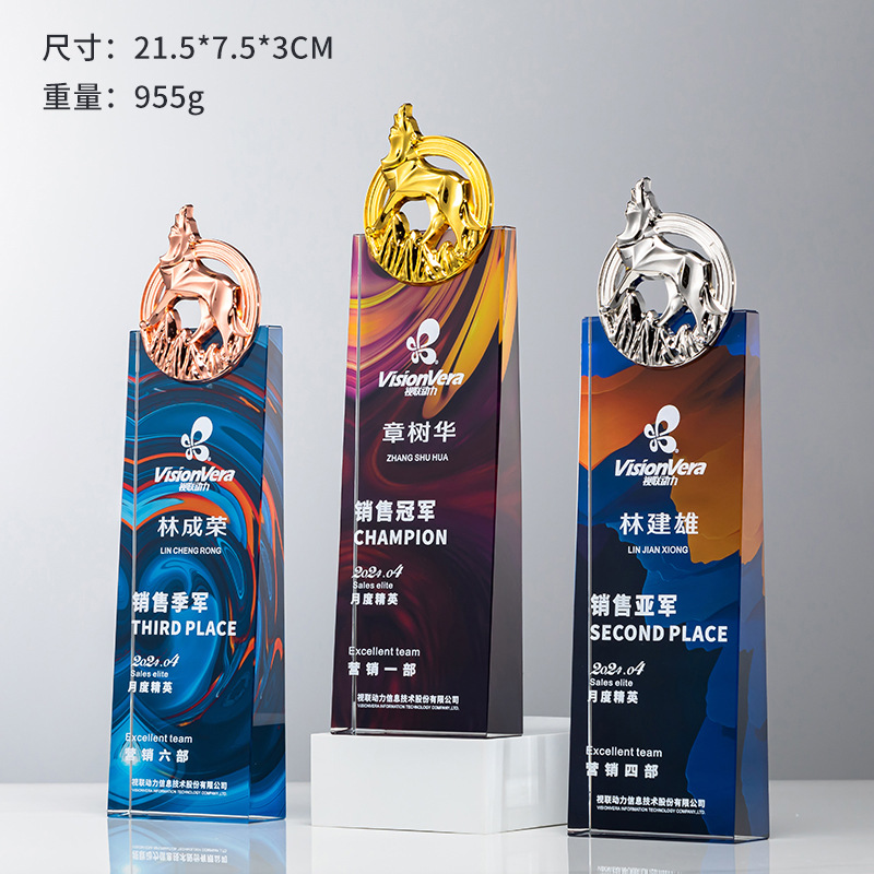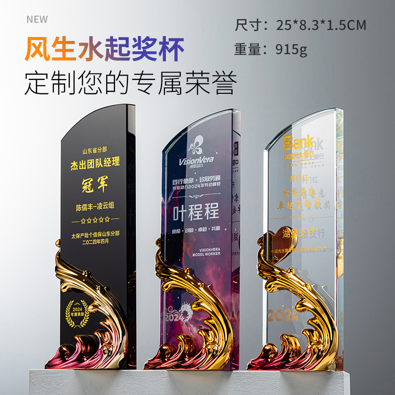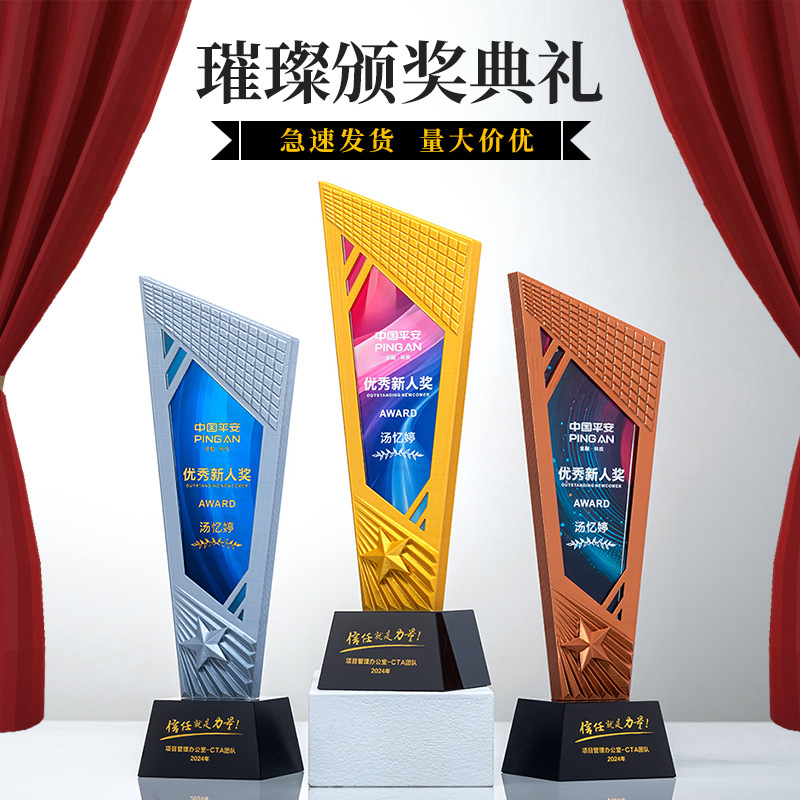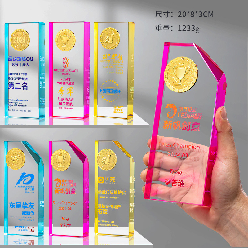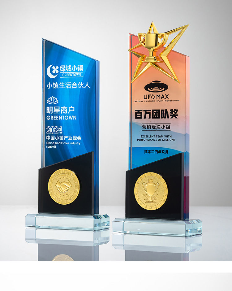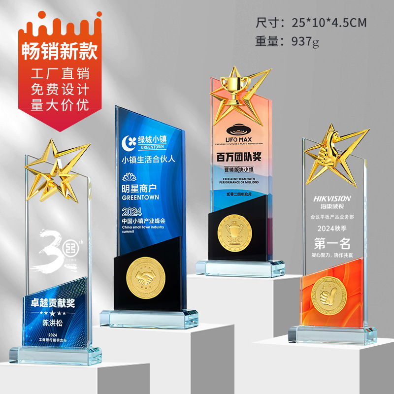 新款奖杯水晶创意奖牌企业优秀员工年会团队纪念奖品刻字金属奖牌