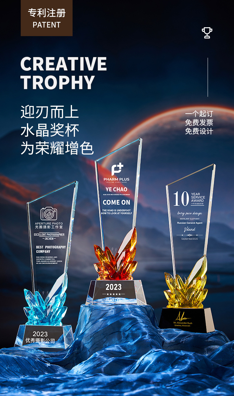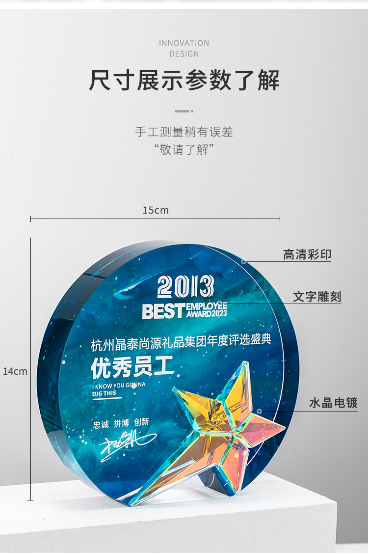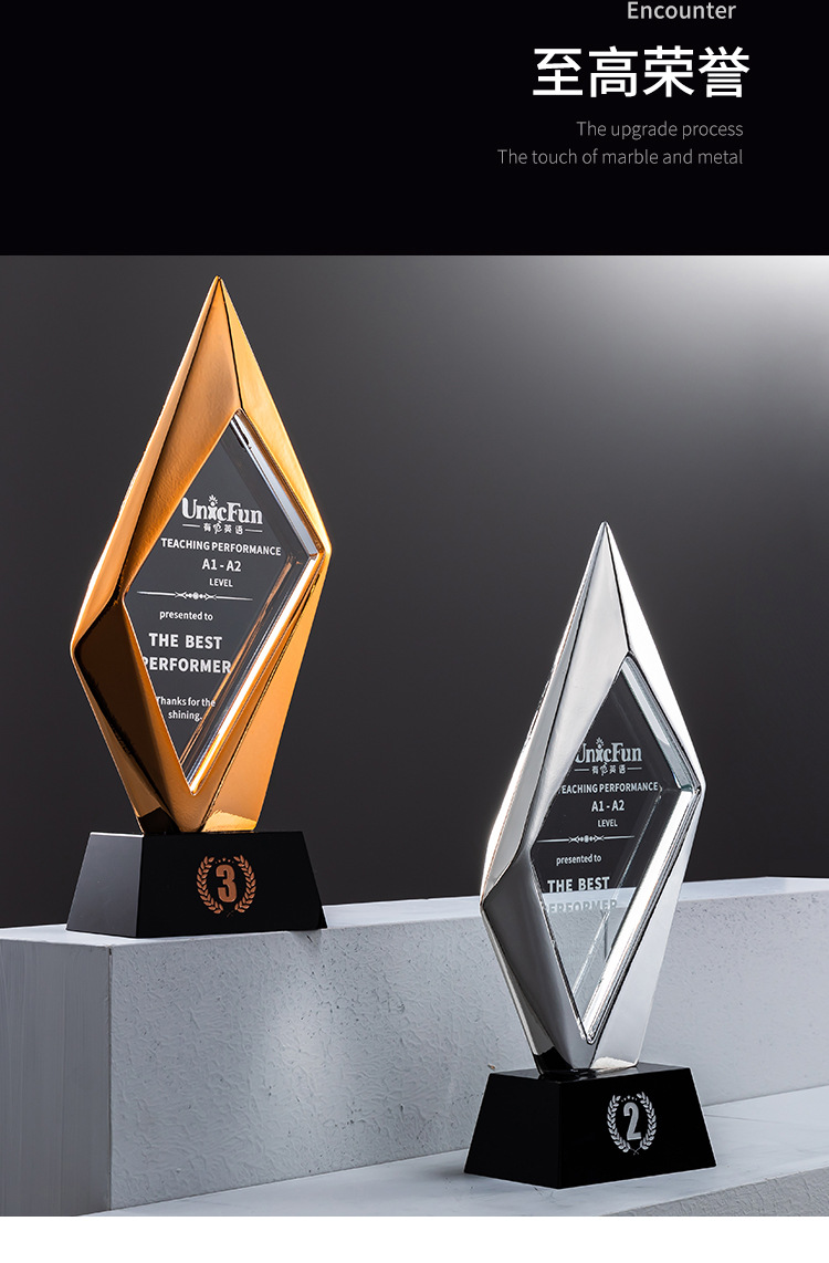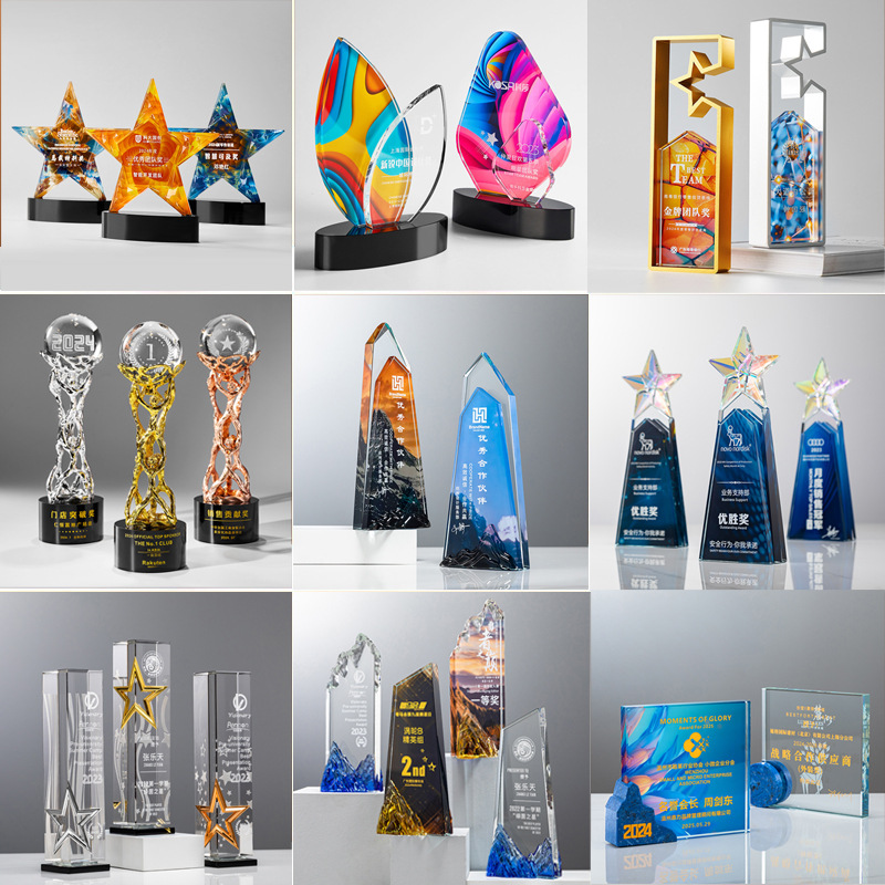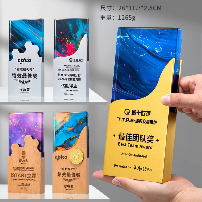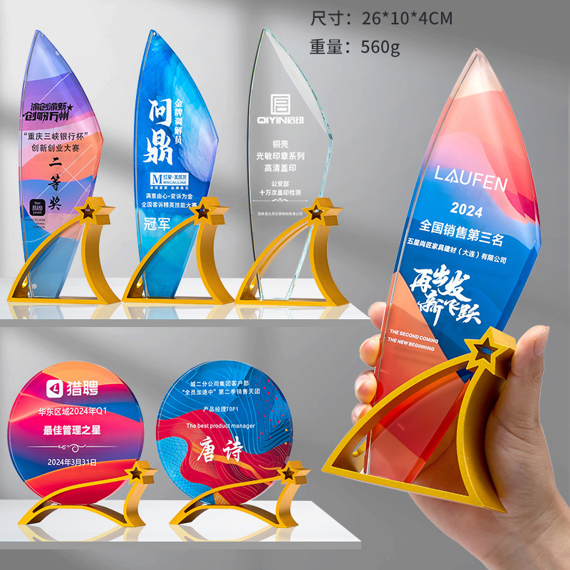 新款奖杯水晶创意奖牌企业优秀员工年会团队纪念奖品刻字金属奖牌