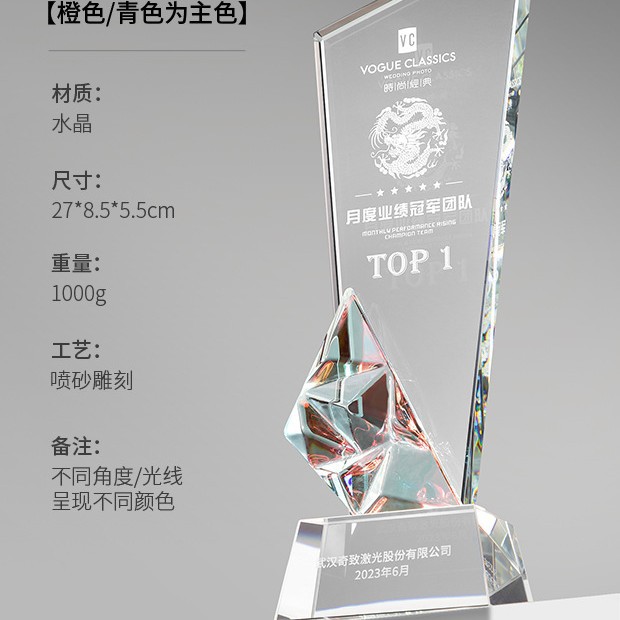 新款创意水晶奖杯定制高档大气奖牌定做优秀员工销售年会颁奖订制