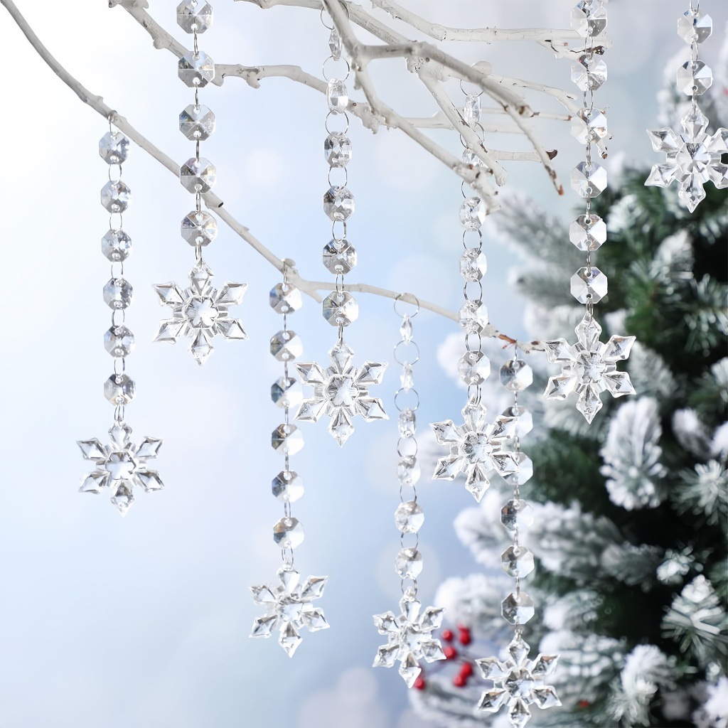 跨境透明仿水晶珠串挂件圣诞雪花冰柱圣诞树装饰婚庆灯饰挂件吊坠