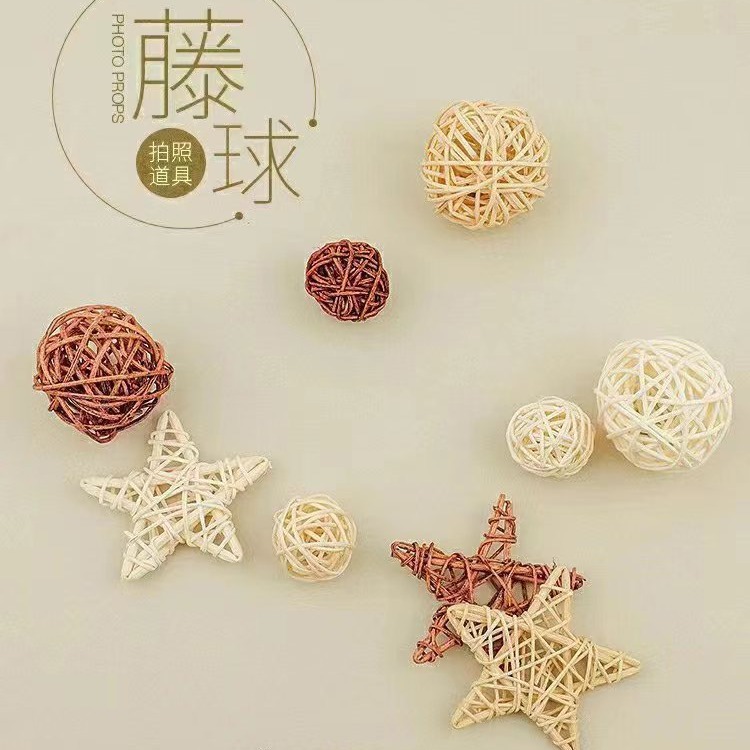 藤球套装彩色藤编织藤球星星diy手工挂件客厅幼儿园环境创意装饰