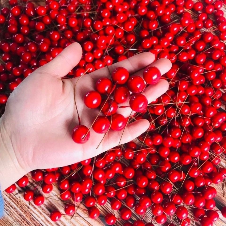 圣诞红果仿真红果浆果冬青果发财果红圆球配件家居装饰红樱桃果