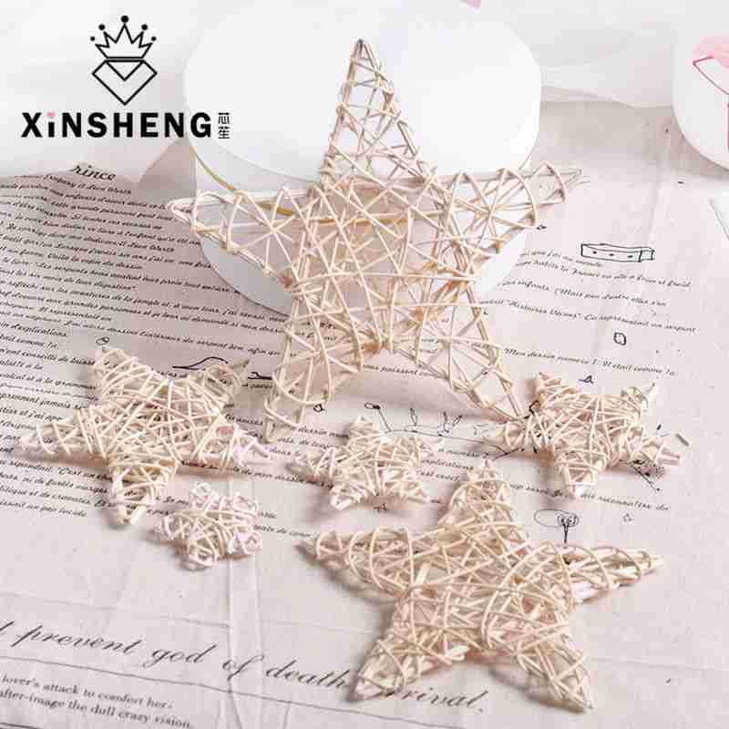 跨境米白色 印尼藤编五角星 圣诞节庆环境布置花艺装饰品亚马逊