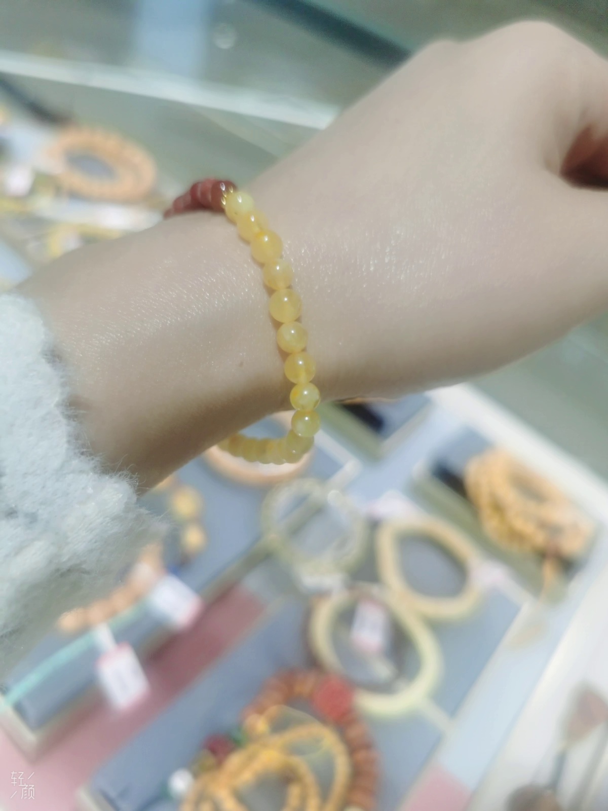 俄罗斯天然蜜蜡镶嵌南红,好看,特别显手白