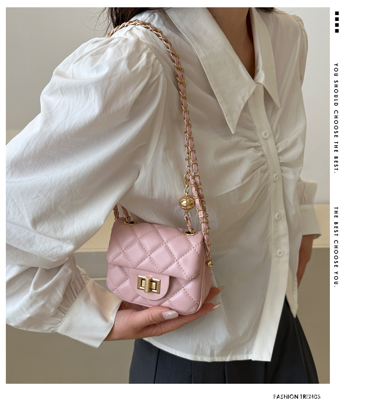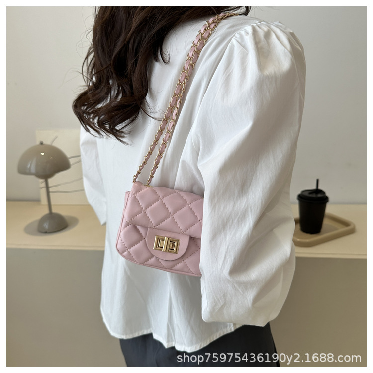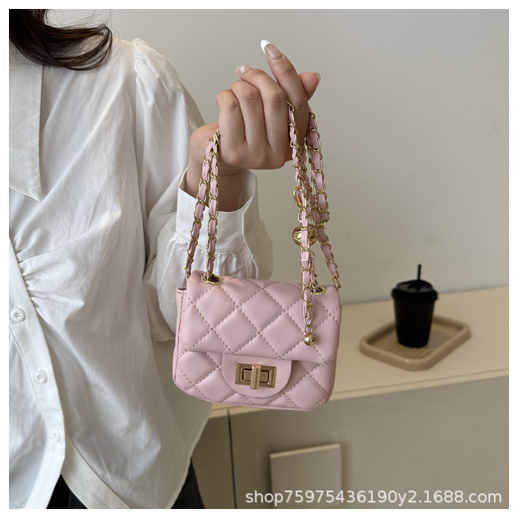 菱格链条迷你小包包新款小香风锁扣女包时尚简约单肩斜挎小方包潮