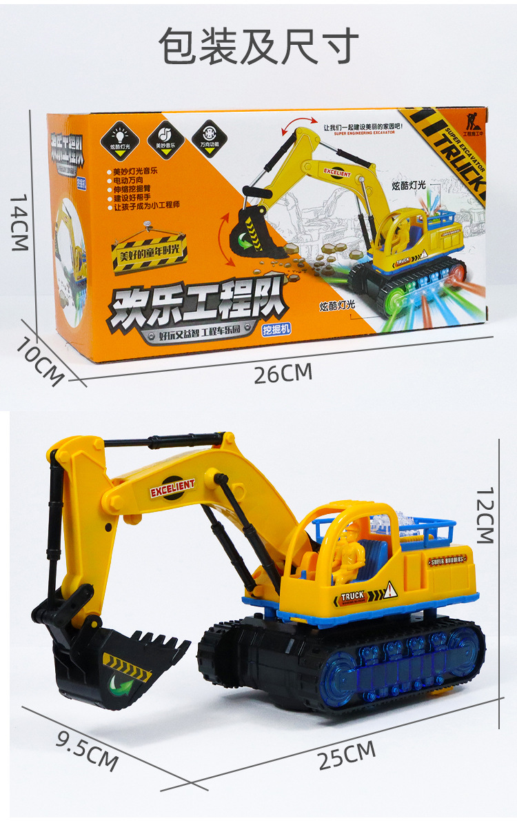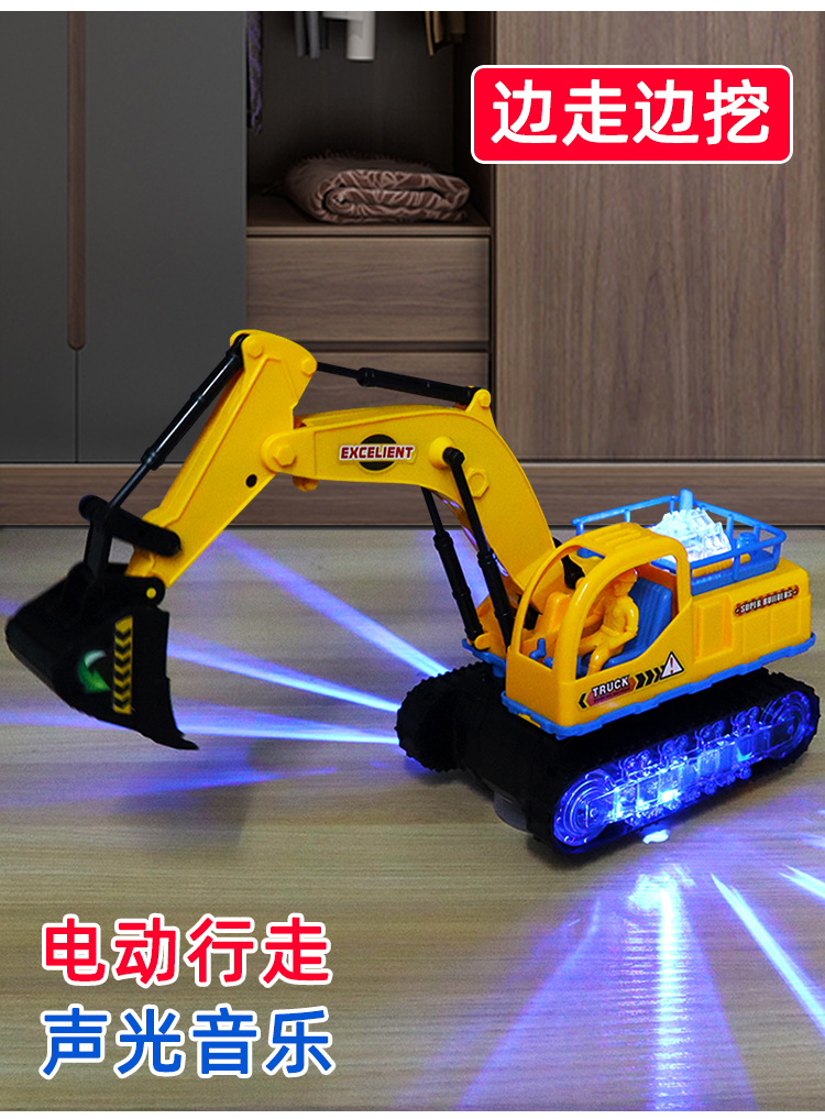 儿童电动挖掘机玩具男孩闪光音乐玩具车电动万向工程车挖土机模型