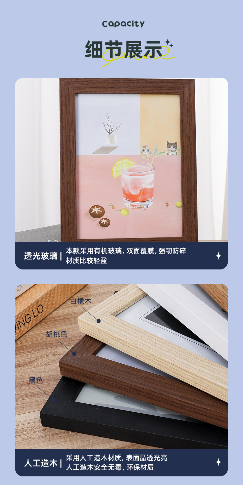 亚克力相框diy5寸6寸7寸8寸10寸a4画框摆台客厅装饰相框6寸相框