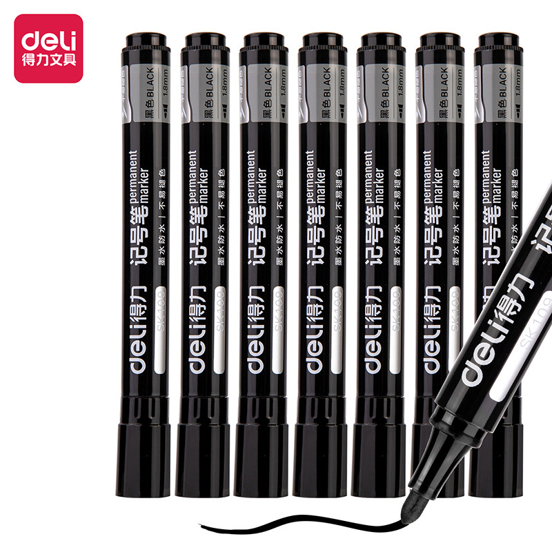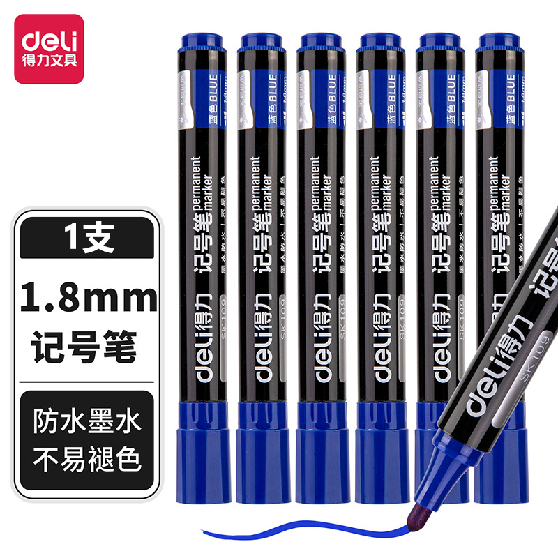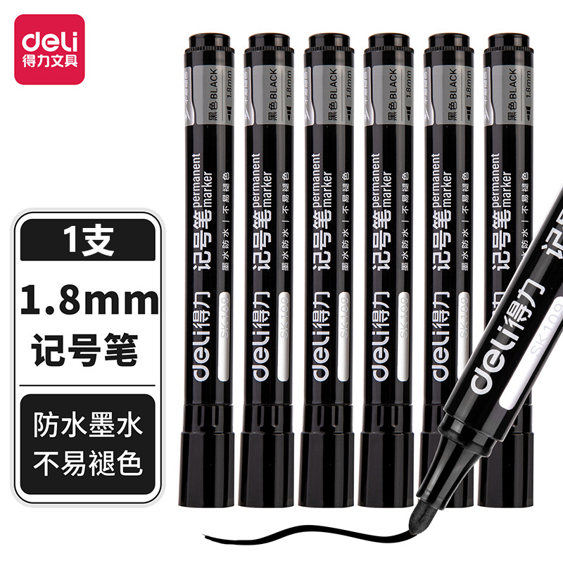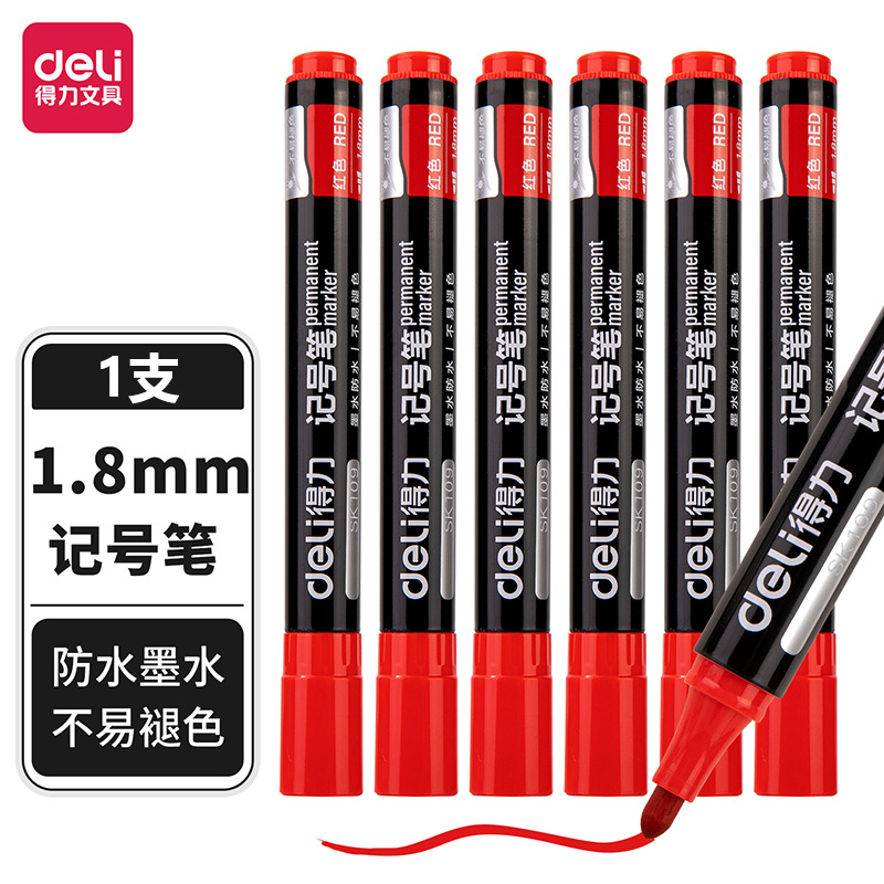 得力记号笔批发油性黑色红色记号笔粗防水不掉色速干大头快递工地