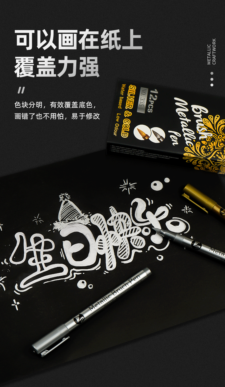 高光金属笔金色银色记号笔防水高颜值水性油漆笔签字贺卡绘画笔