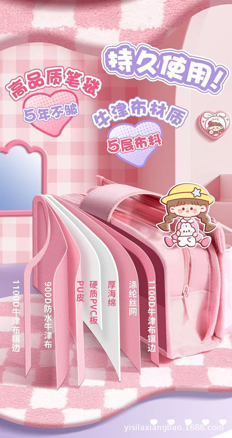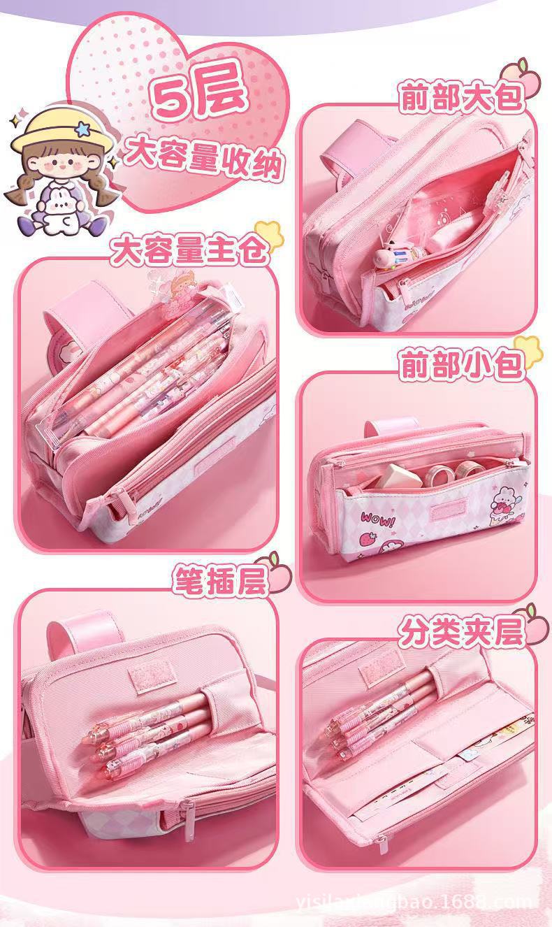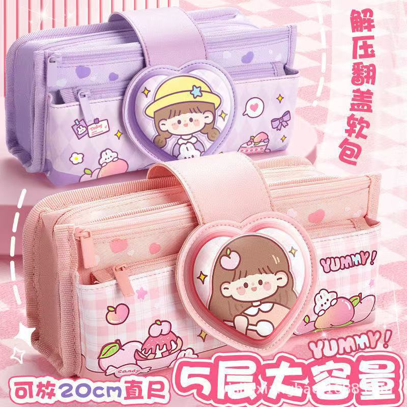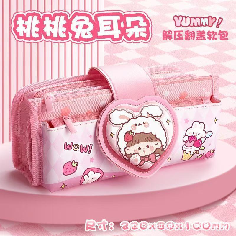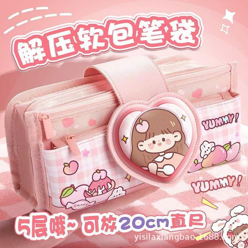 咔巴熊大容量笔袋女小学生文具盒多层解压女生女孩款高颜值多功能