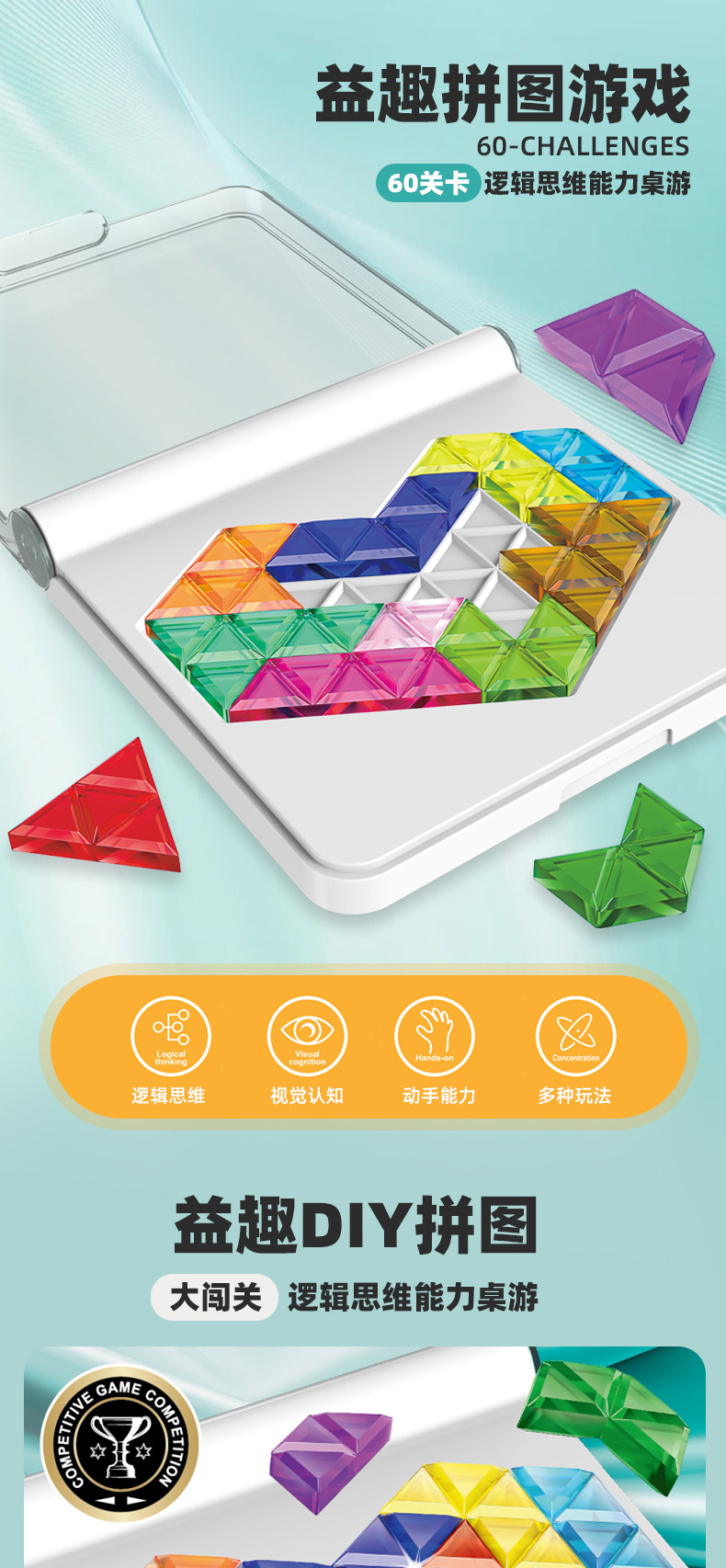 儿童逻辑思维训练游戏60关卡进阶式拼图闯关桌游动手动脑益智玩具