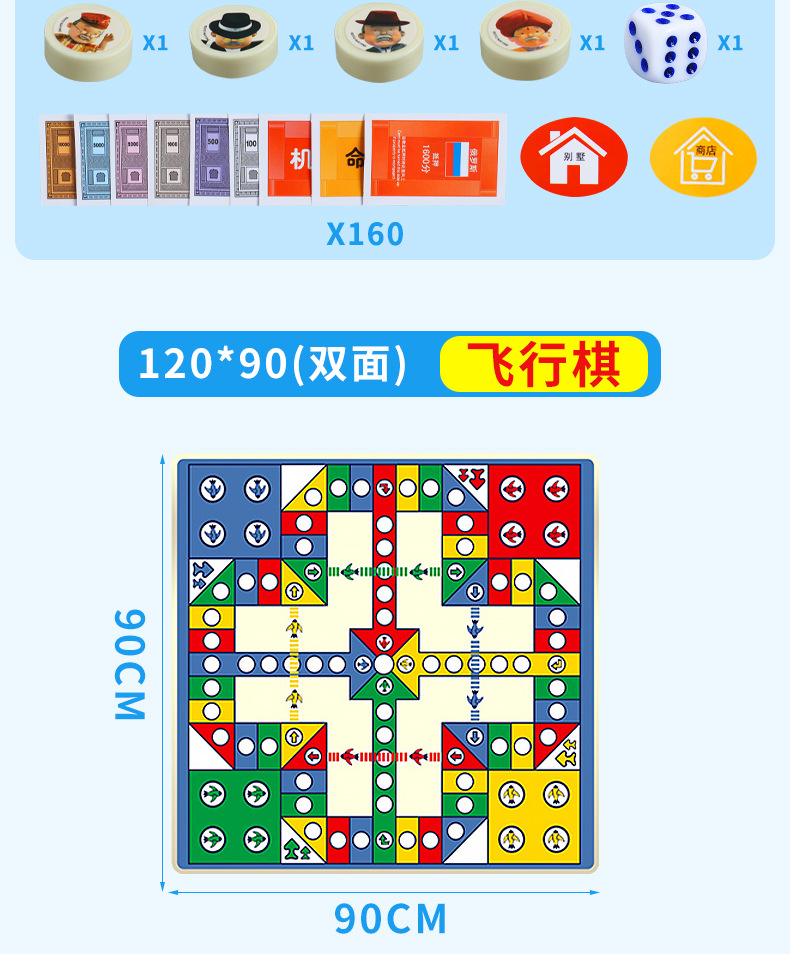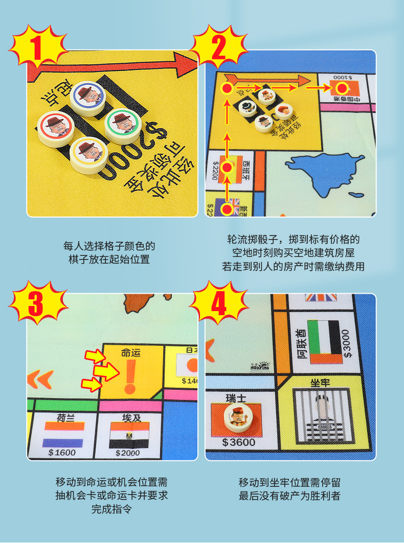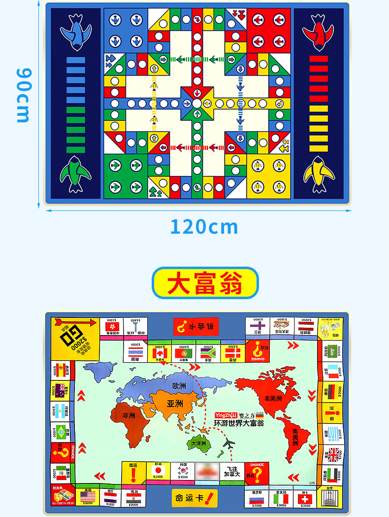 儿童益智玩具亲子互动游戏双面大骰子大号富翁飞行棋地毯爬行地垫