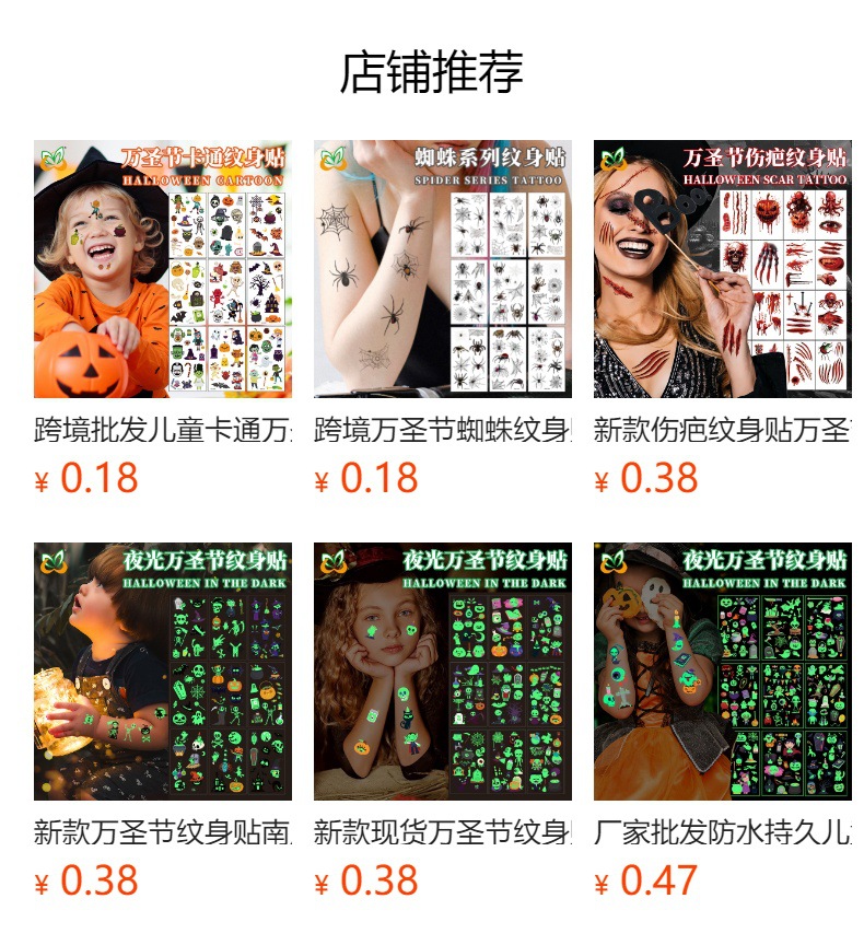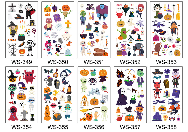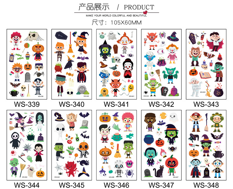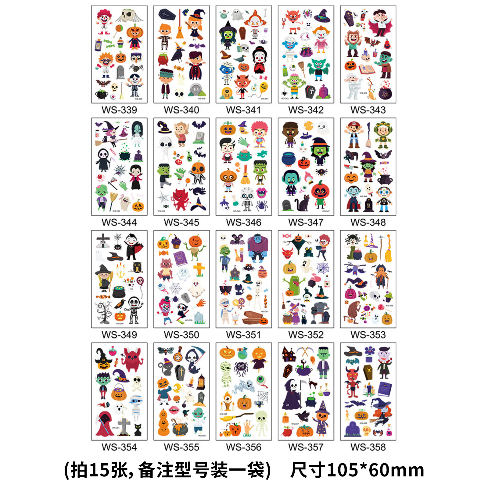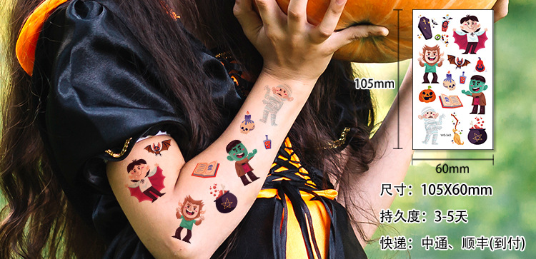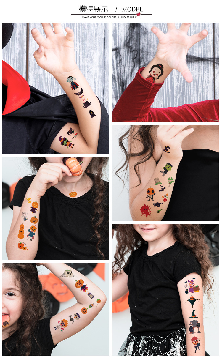 现货儿童卡通万圣节纹身贴防水防汗派对聚会礼品搞怪趣味临时贴纸