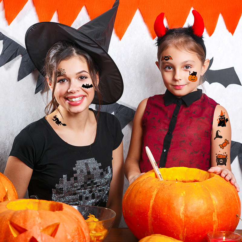 跨境新款卡通万圣节纹身贴高级感儿童可爱搞怪节日派对纹身贴纸