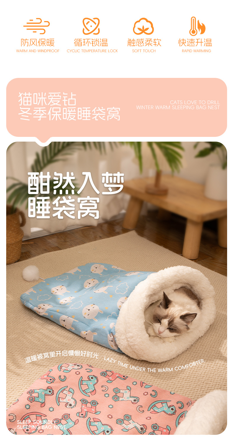 羊羔绒加厚口袋型宠物新款冬季麻布睡袋猫窝猫咪狗睡袋窝工厂批发