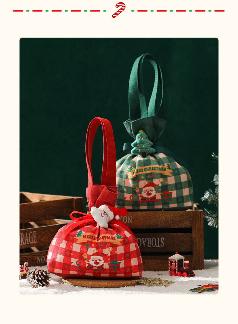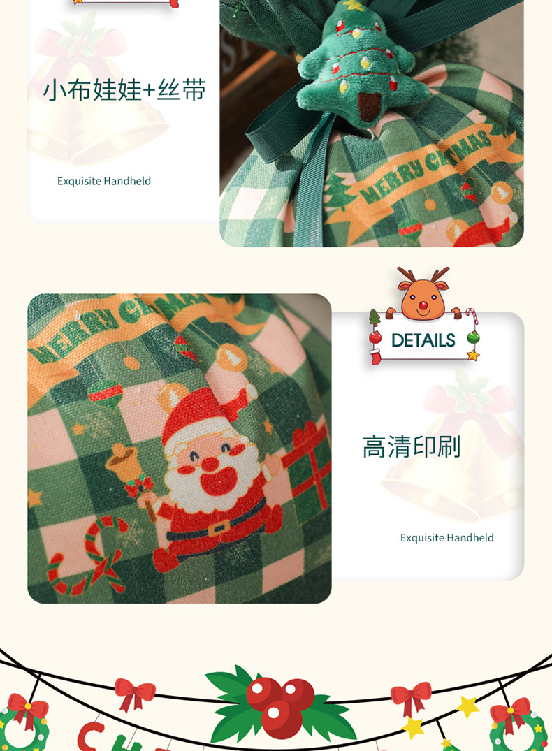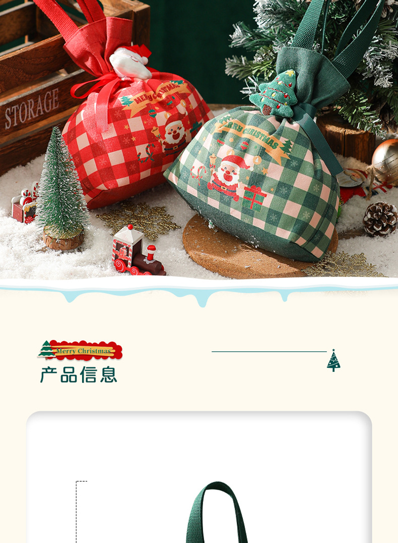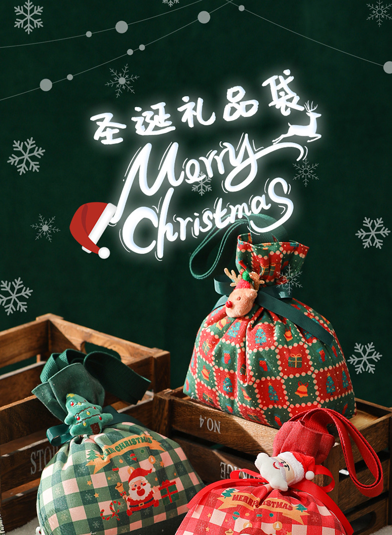 新款2025圣诞礼品袋手提帆布苹果袋圣诞礼物平安夜苹果礼盒束口袋