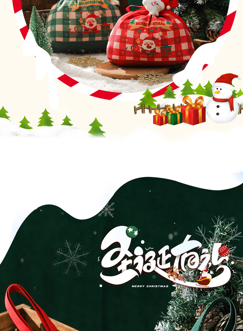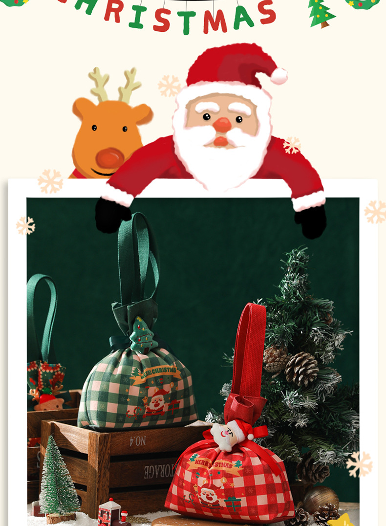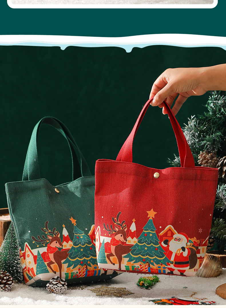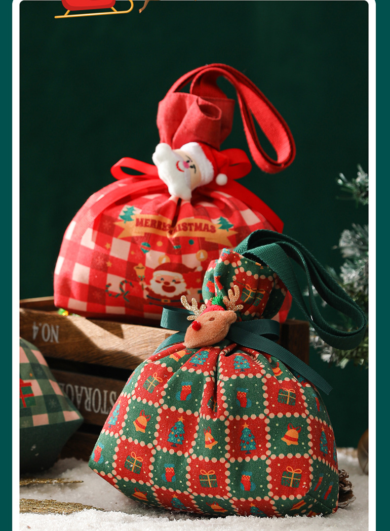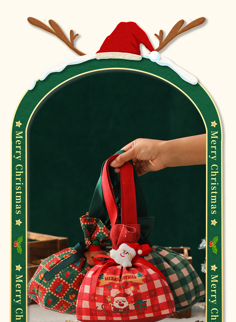 新款2025圣诞礼品袋手提帆布苹果袋圣诞礼物平安夜苹果礼盒束口袋
