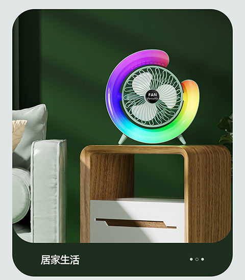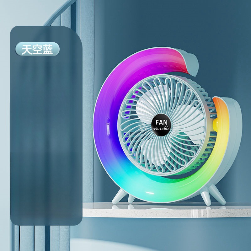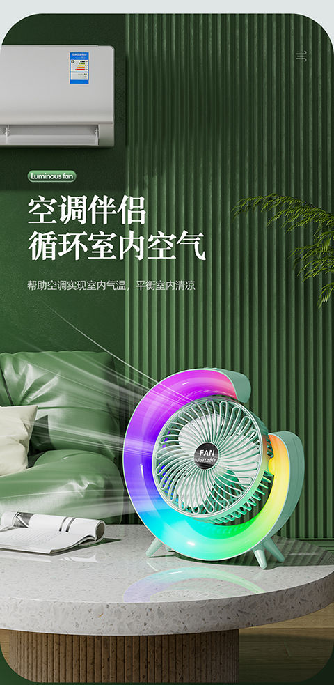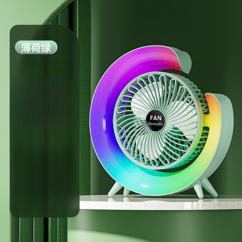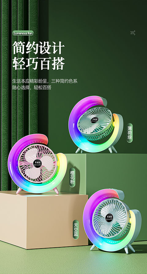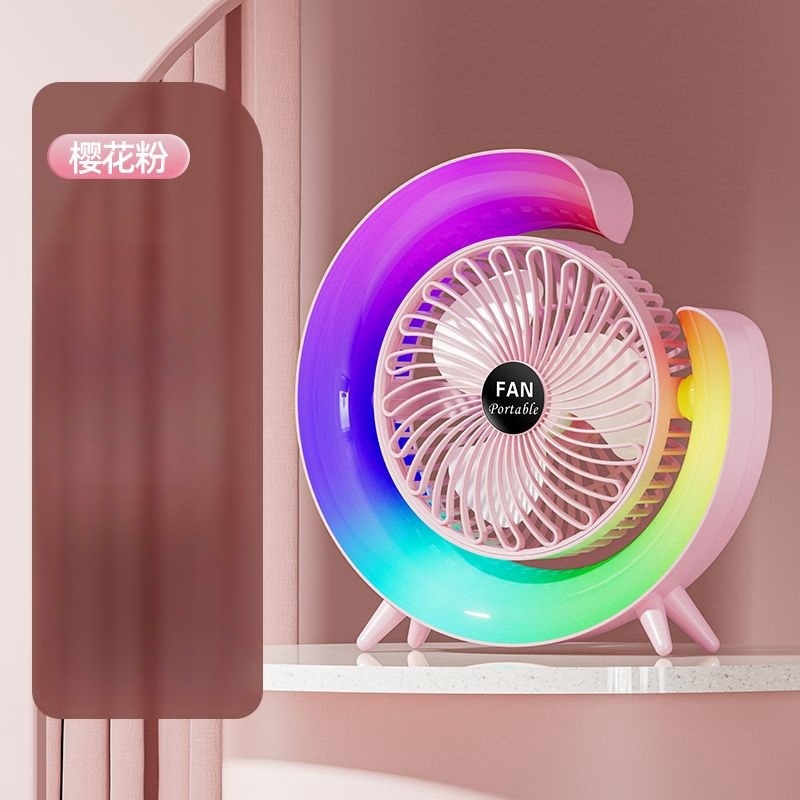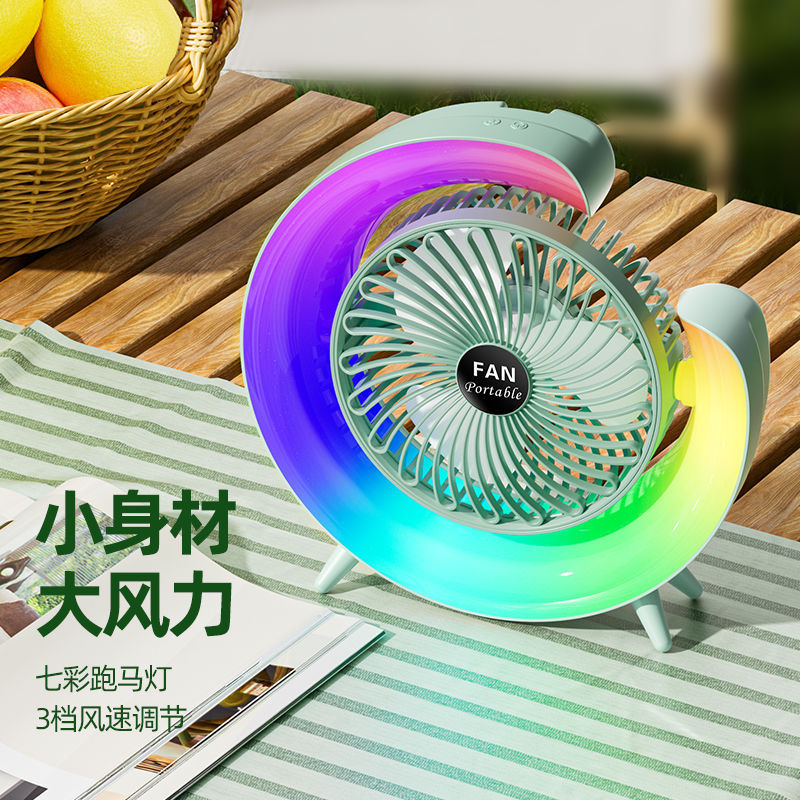 新款跨境彩色跑马灯风扇usb充电小风扇办公桌面学生宿舍台灯风扇