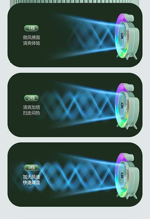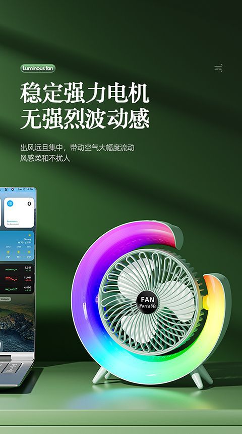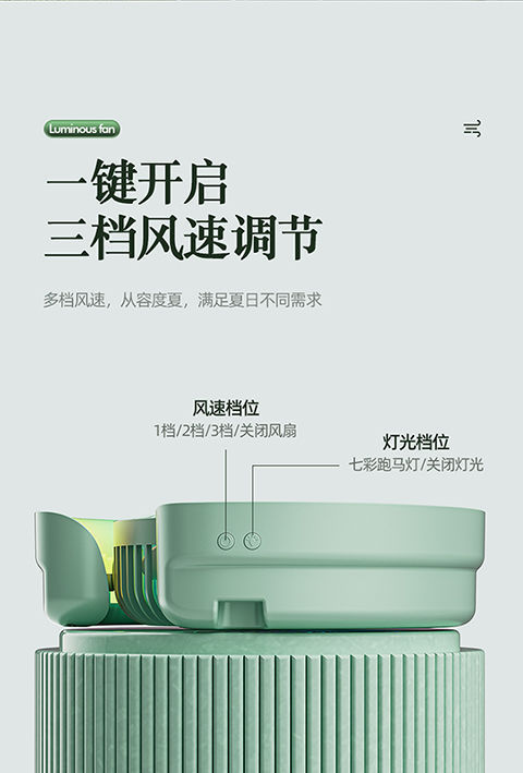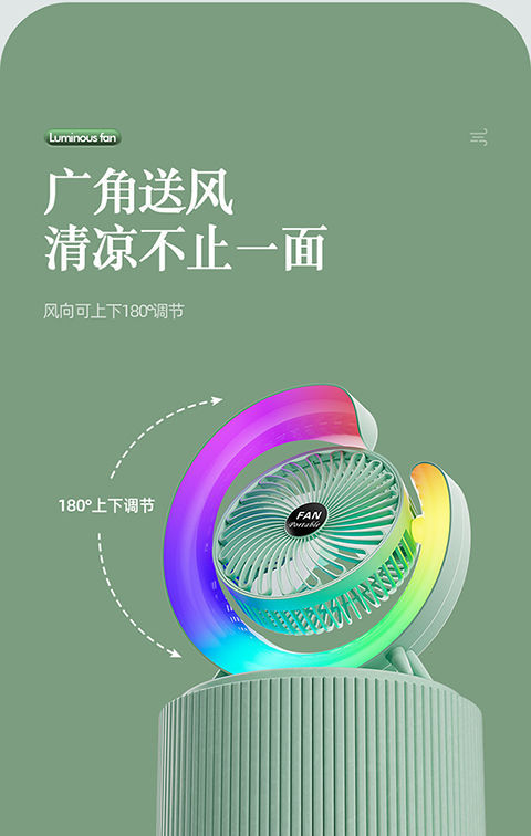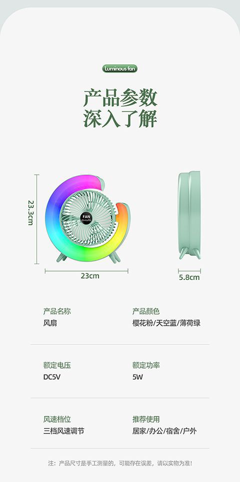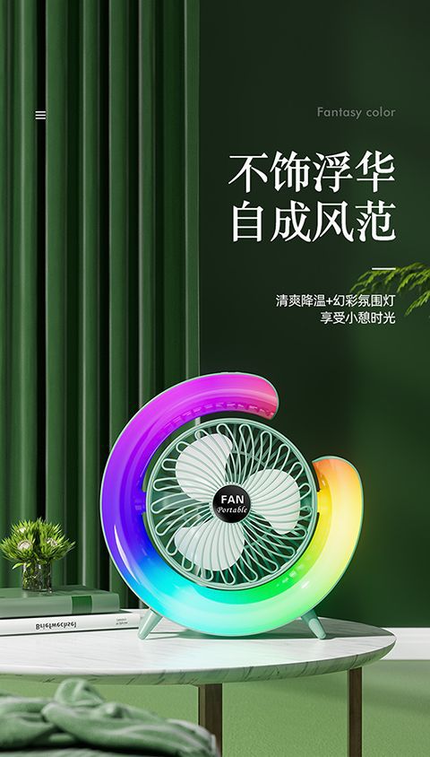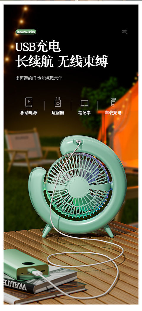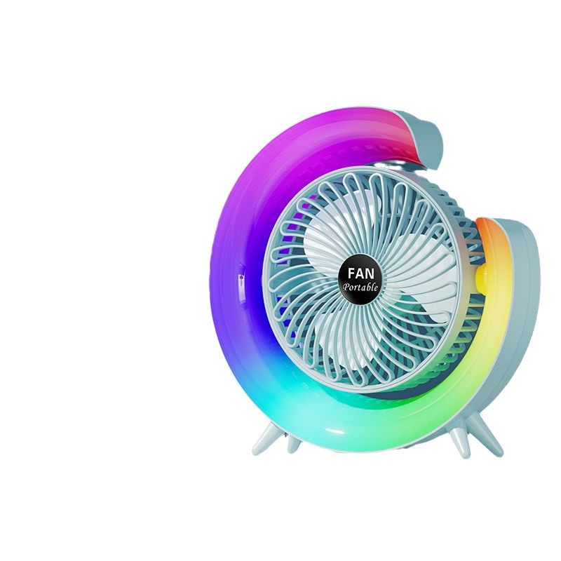 新款跨境彩色跑马灯风扇usb充电小风扇办公桌面学生宿舍台灯风扇