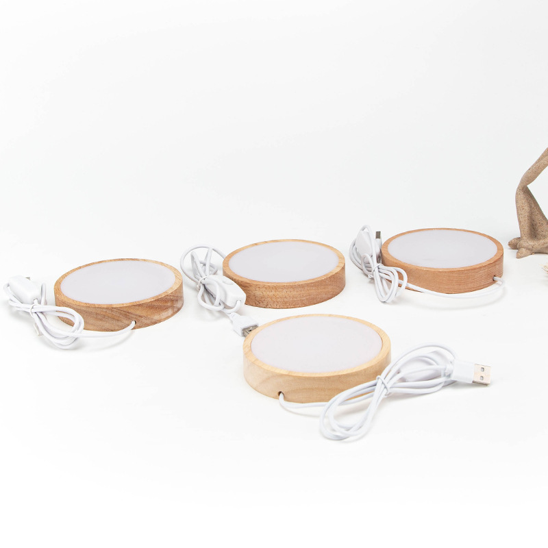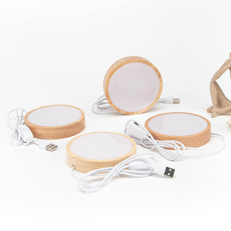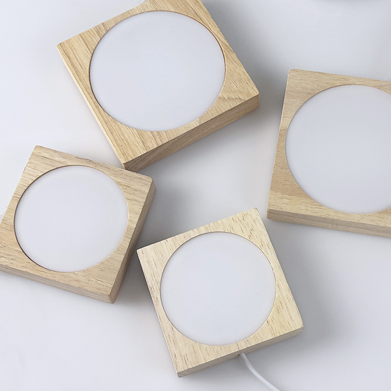 圆形橡胶木扩散板小夜灯木底座 正方形无线触摸开关diy小酒瓶配件