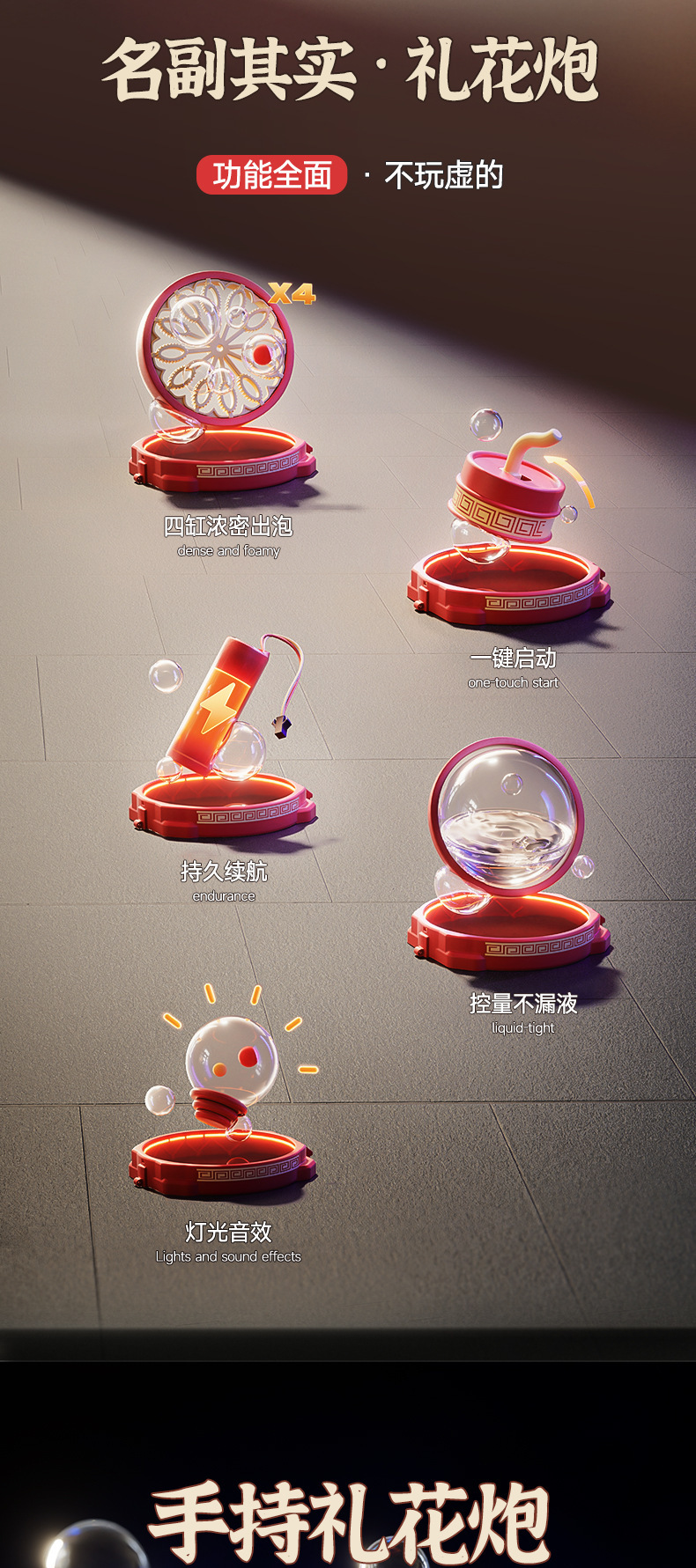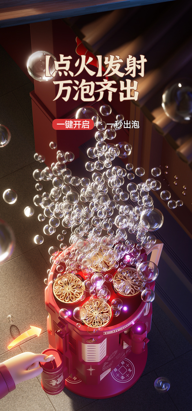 48孔烟花泡泡机过新年全自动鞭炮烟花七彩灯光男女孩玩具婚庆礼物