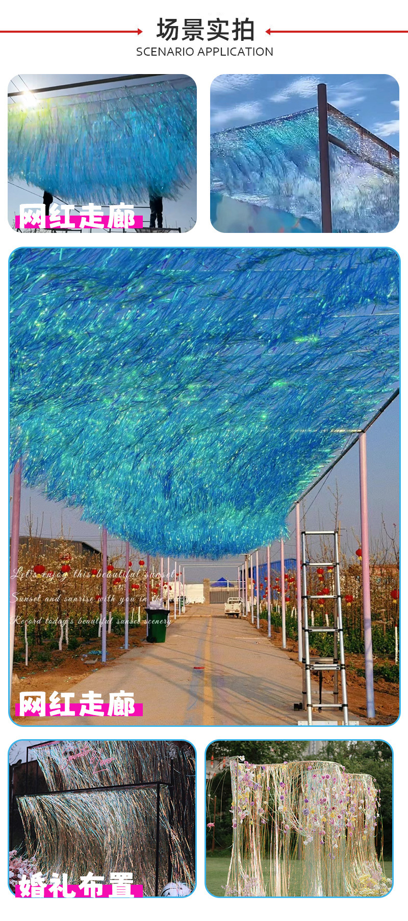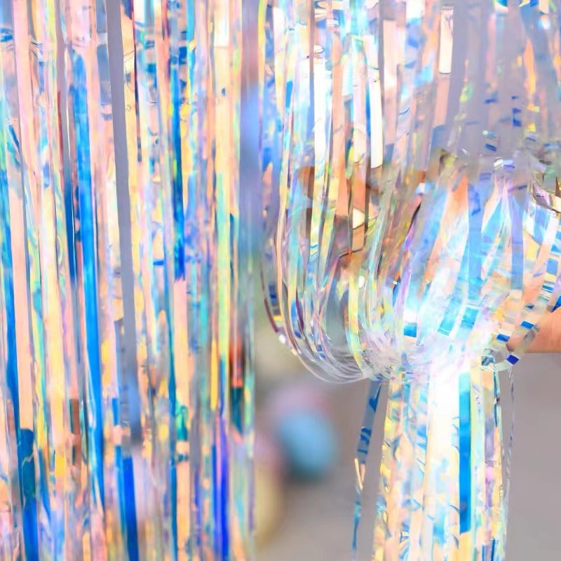 跨镜专供加厚户外场地装饰镭射七彩金光炫彩雨丝帘生日派对布置