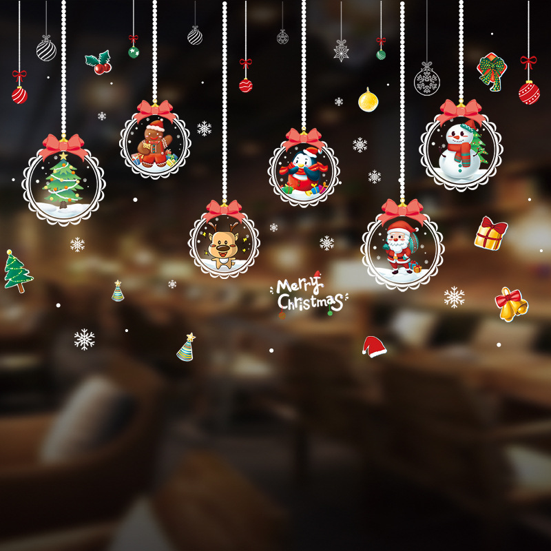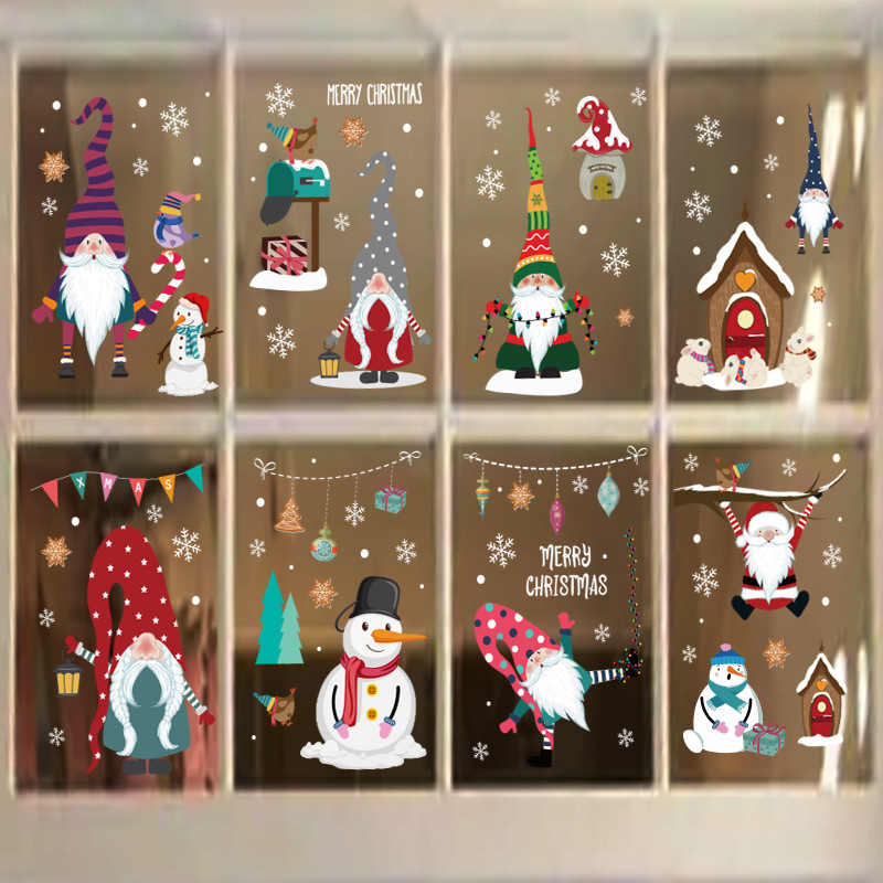 跨境新款圣诞贴纸橱窗贴圣诞装饰用品静电贴玻璃贴无痕新年彩贴画