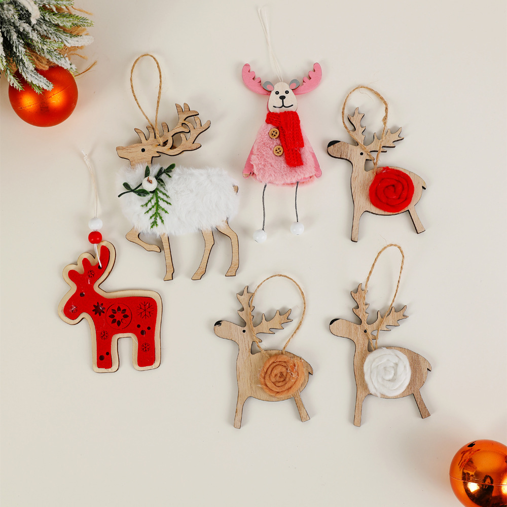 跨境圣诞节卡通挂件木质挂件老人姜饼人麋鹿装饰挂饰圣诞树吊饰品