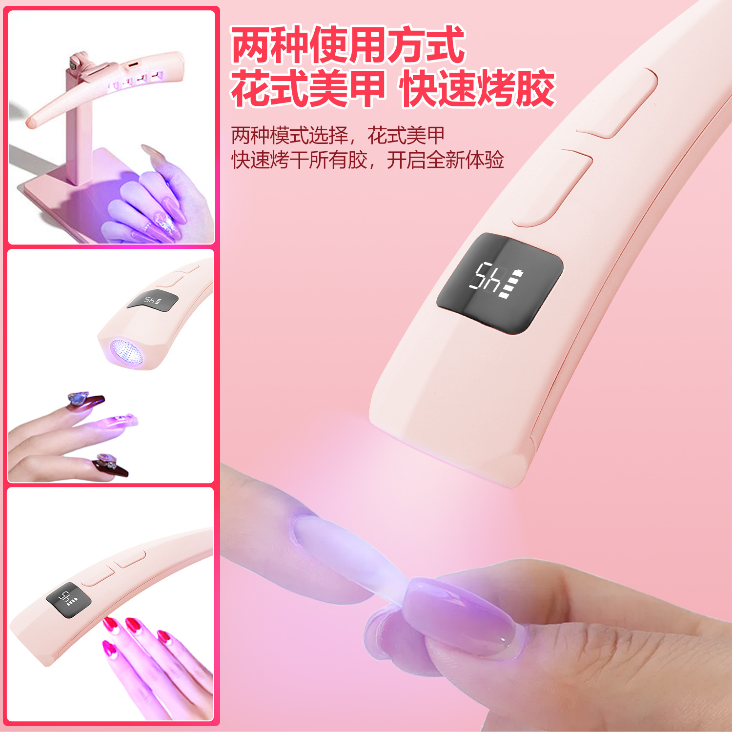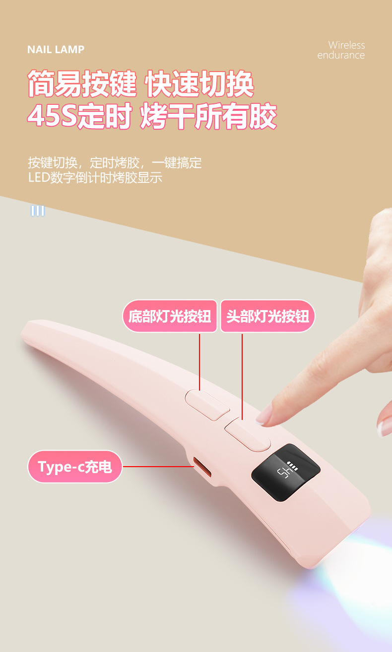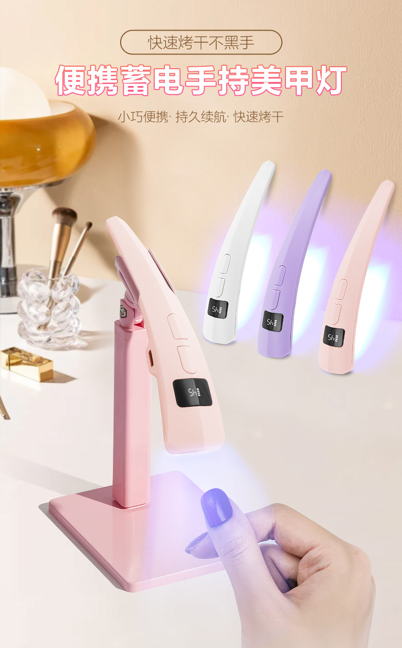 新品手持一字灯带显示屏便携蓄电美甲灯甲油胶速干烤灯光疗机C30
