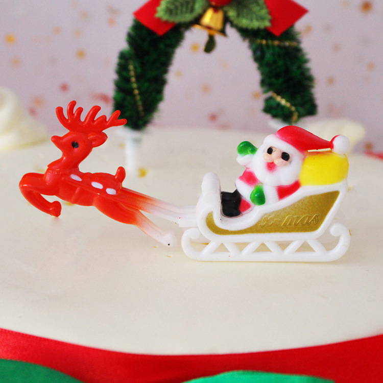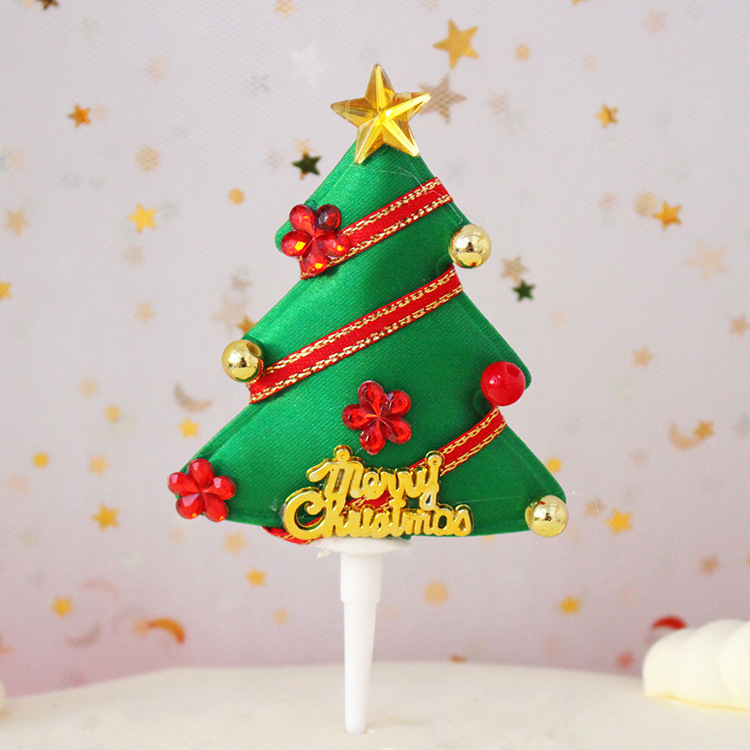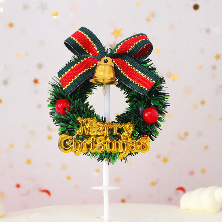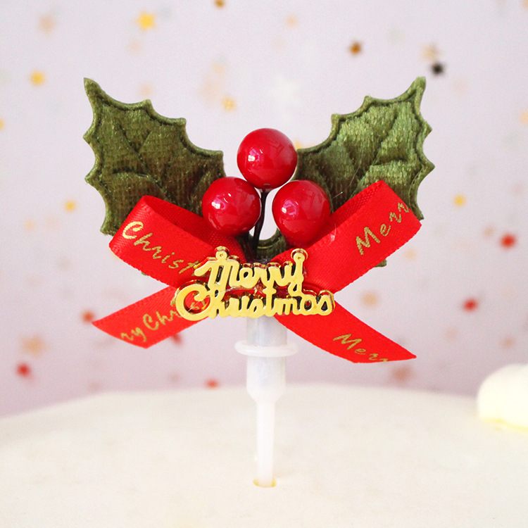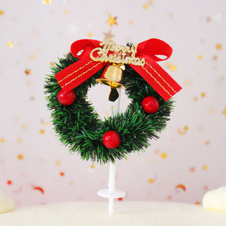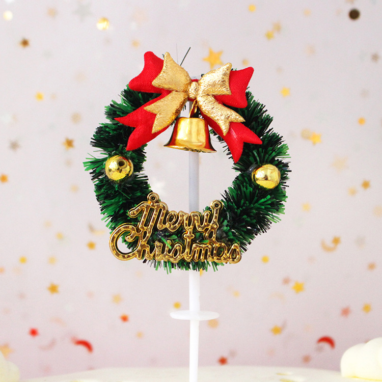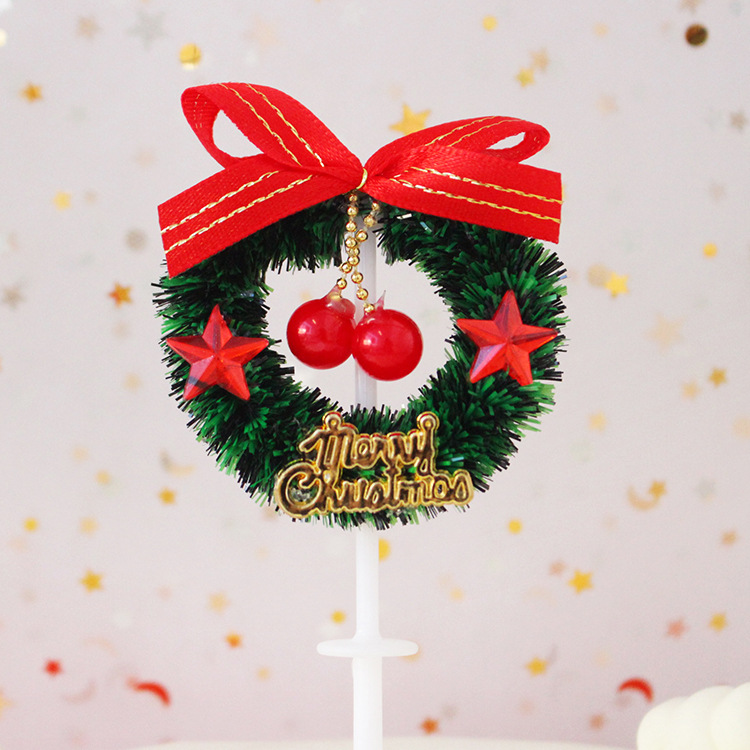 圣诞节蛋糕装饰插牌草圈叶子梅花鹿圣诞树礼包生日烘焙甜品台插旗