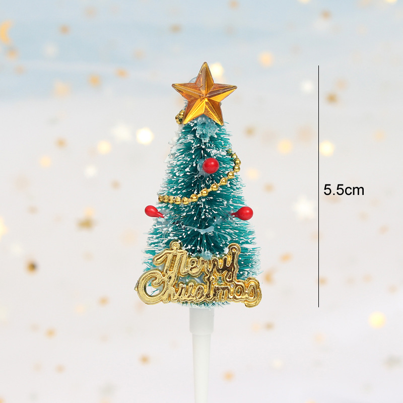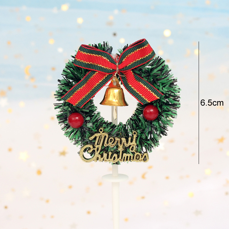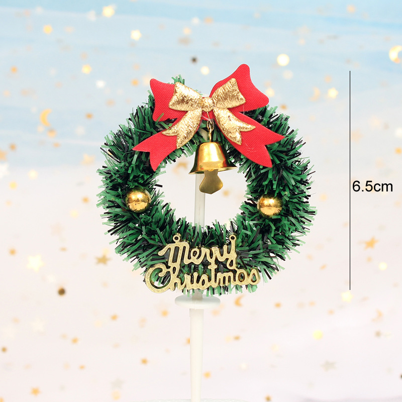 圣诞节蛋糕装饰插牌草圈叶子圣诞老人雪人小鹿圣诞树蛋糕插件摆件