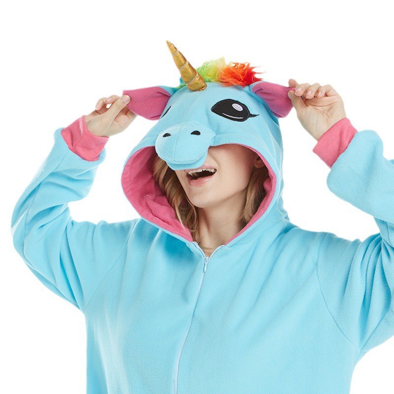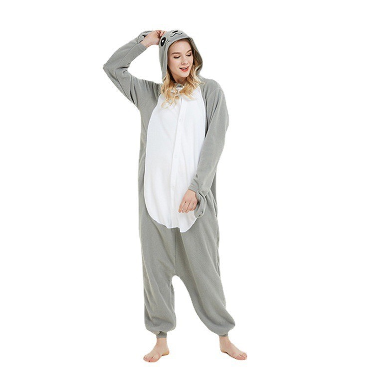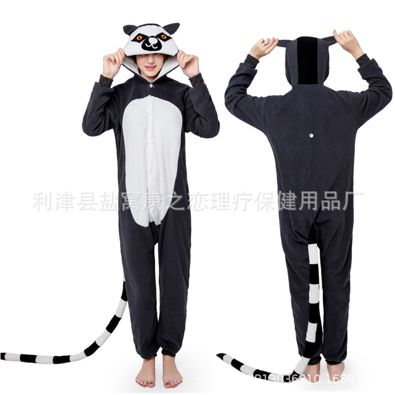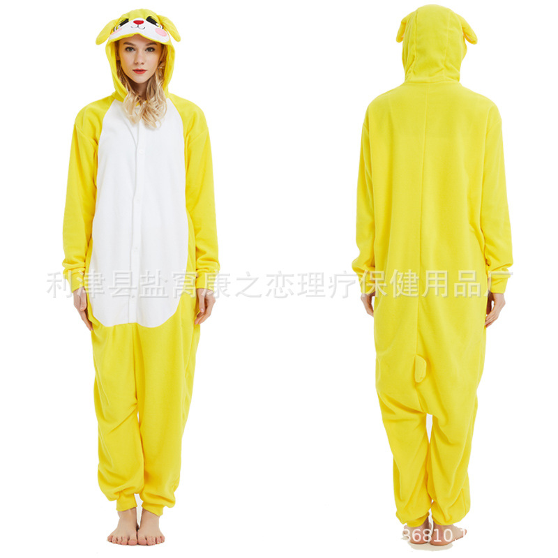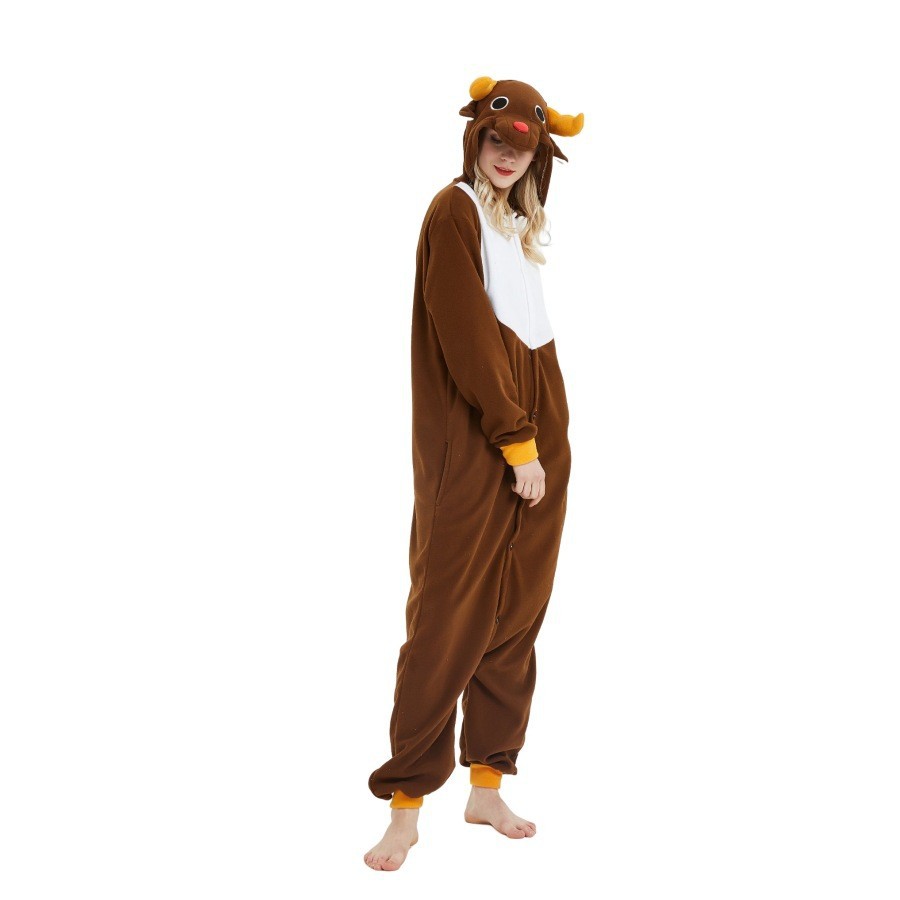 亚马逊跨境批发摇粒绒卡通动物连体睡衣万圣节可爱情侣睡衣