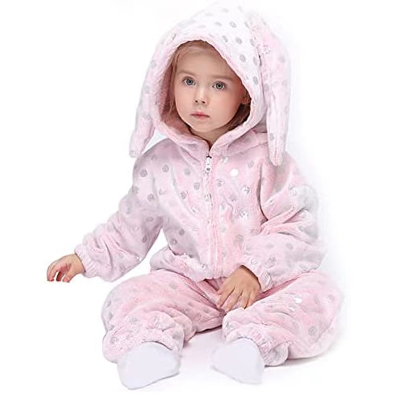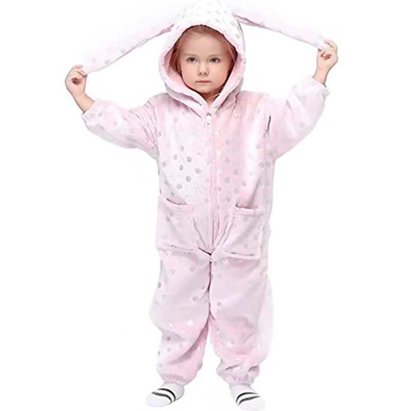 新品秋冬季法兰绒卡通动物连体睡衣烫金圆点兔儿童家居服现货批发
