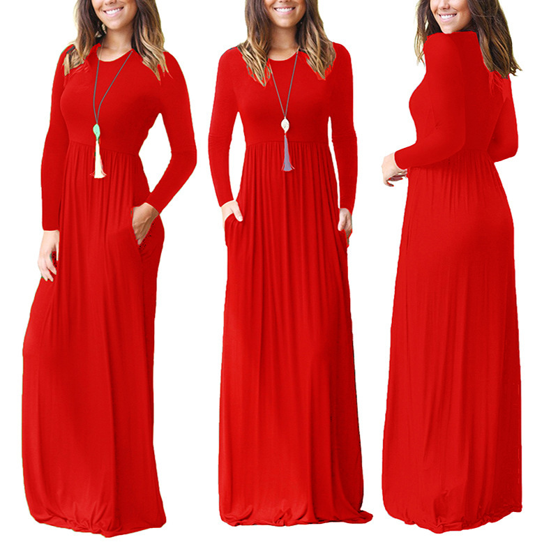 2025春季欧美纯色亲子长袖连衣裙 速卖通 亚马逊爆款母女装连衣裙