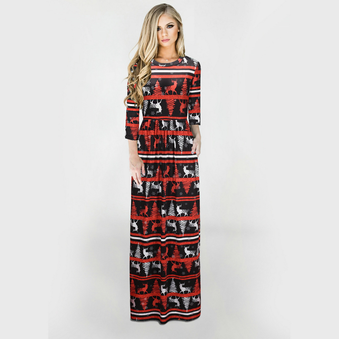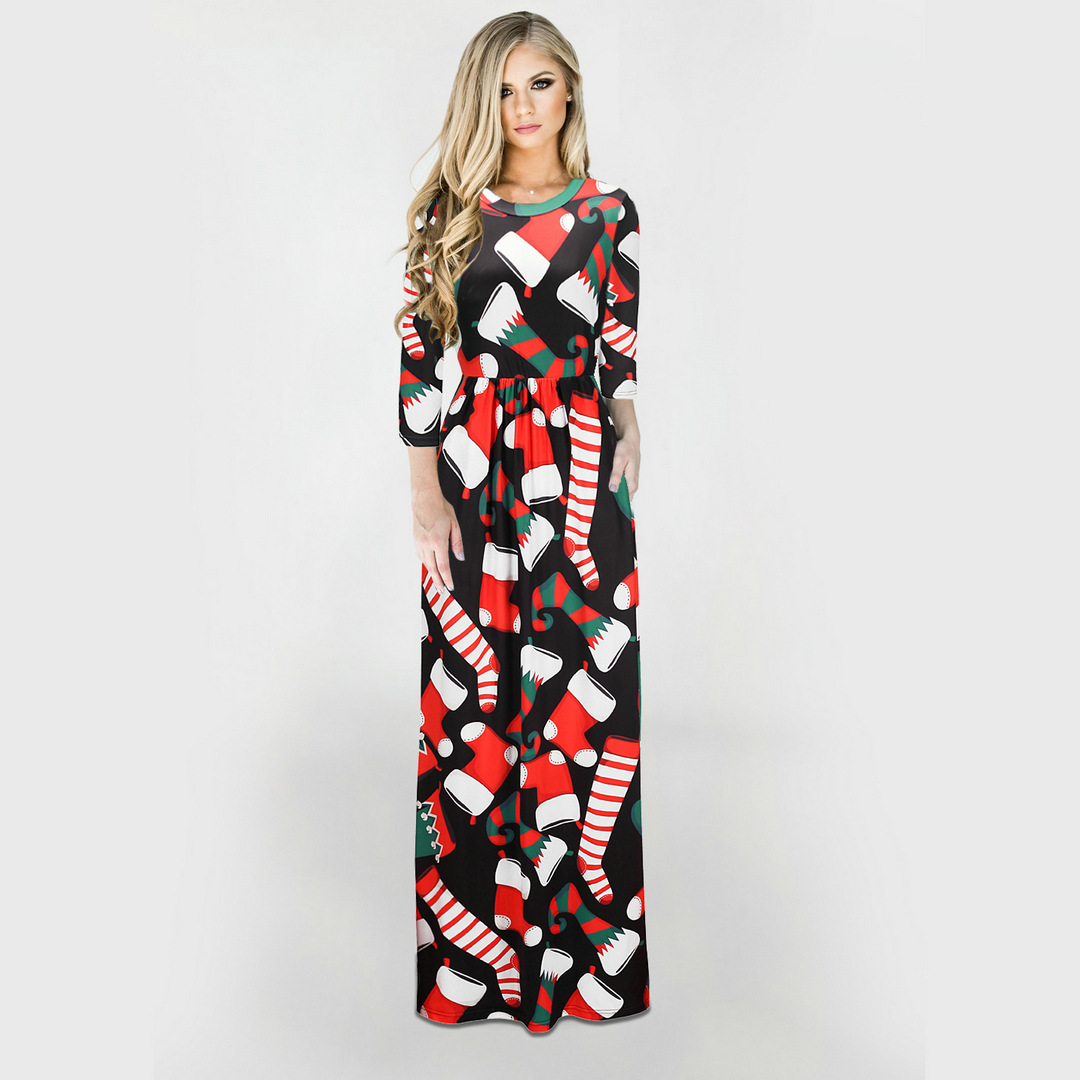 2025ebay新款圣诞服 万圣节服装 欧美印花长袖女装 圣诞节连衣裙