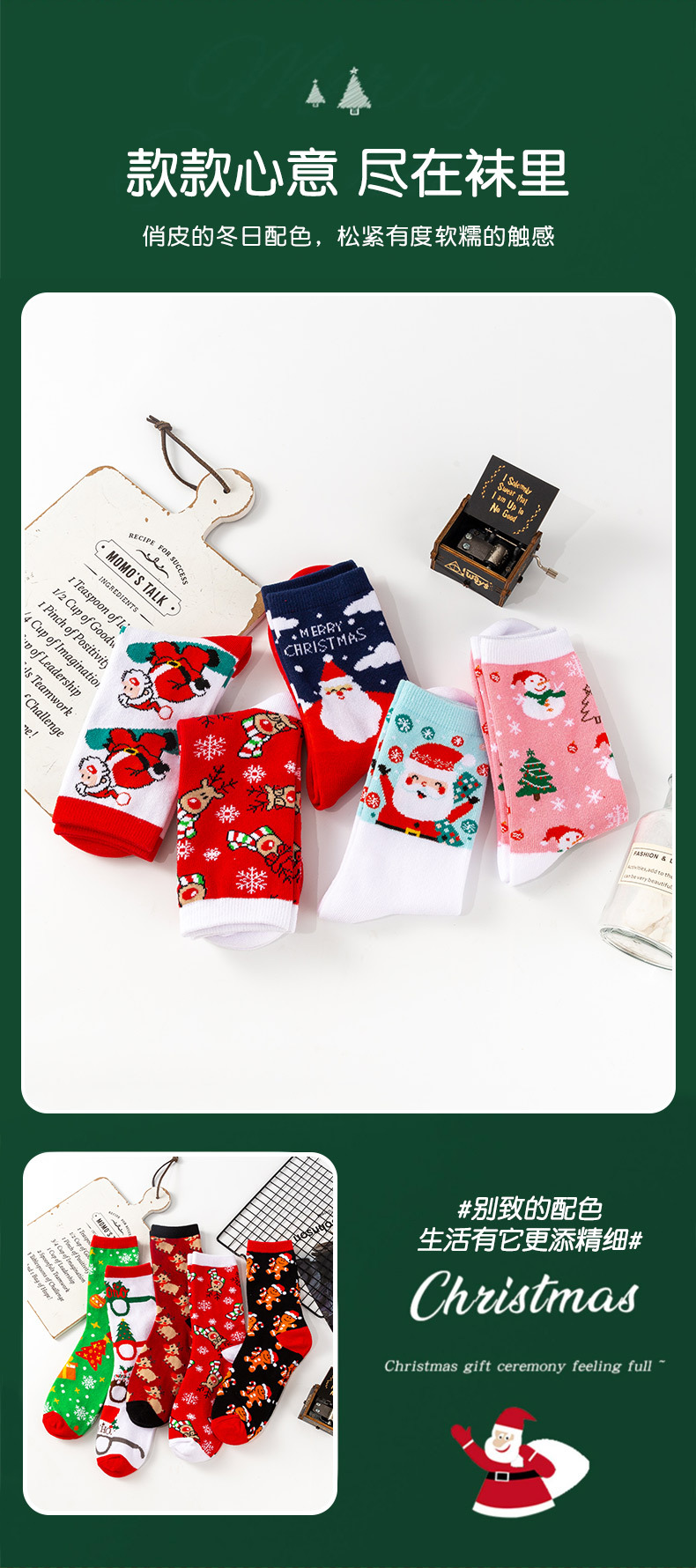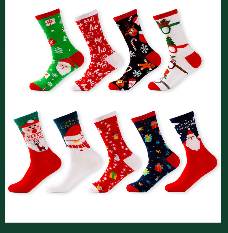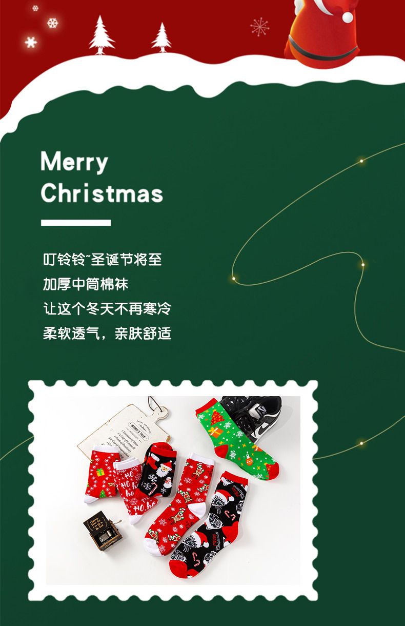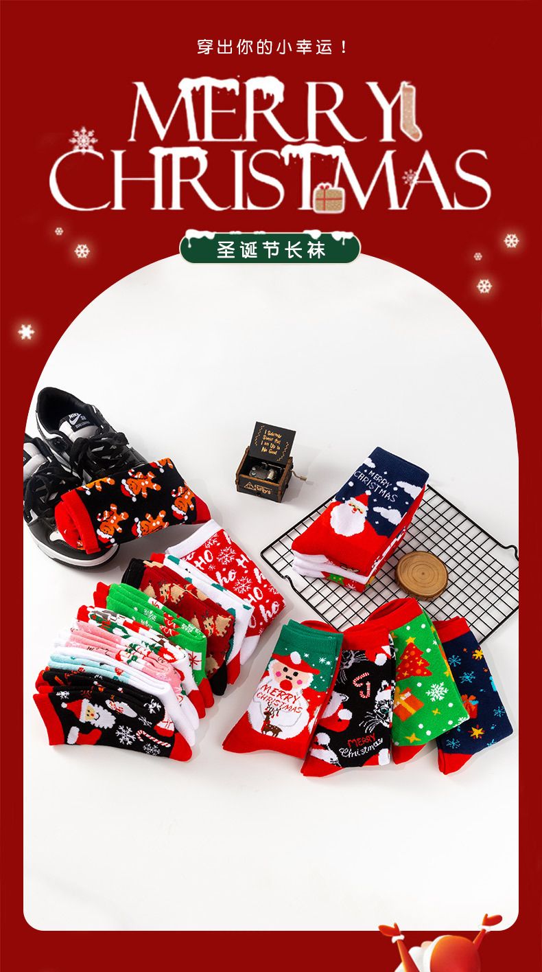 跨境圣诞老人中筒袜新款欧美圣诞袜圣诞树情侣袜子厂家直销袜