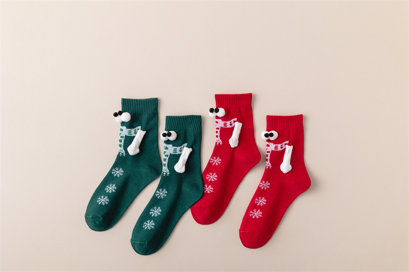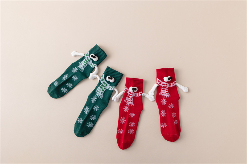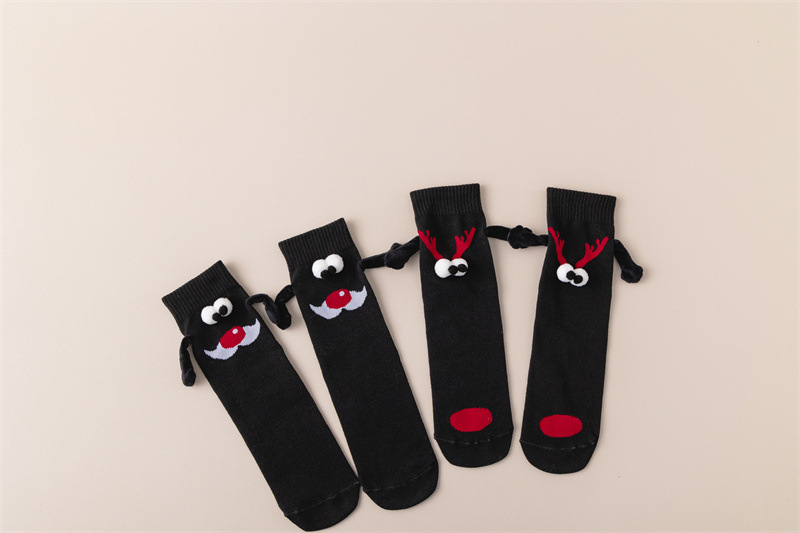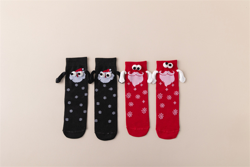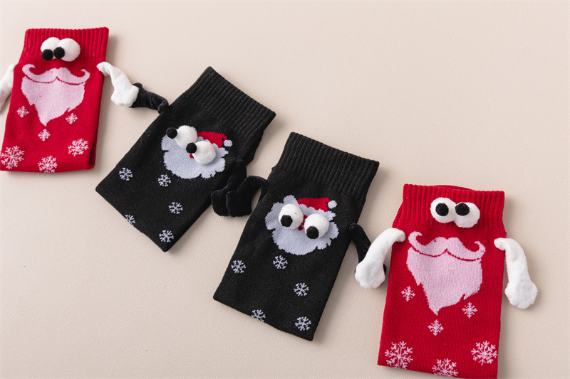 现货跨境圣诞礼物针织牵手袜磁吸袜子爆款网红袜子搞怪个性情侣袜