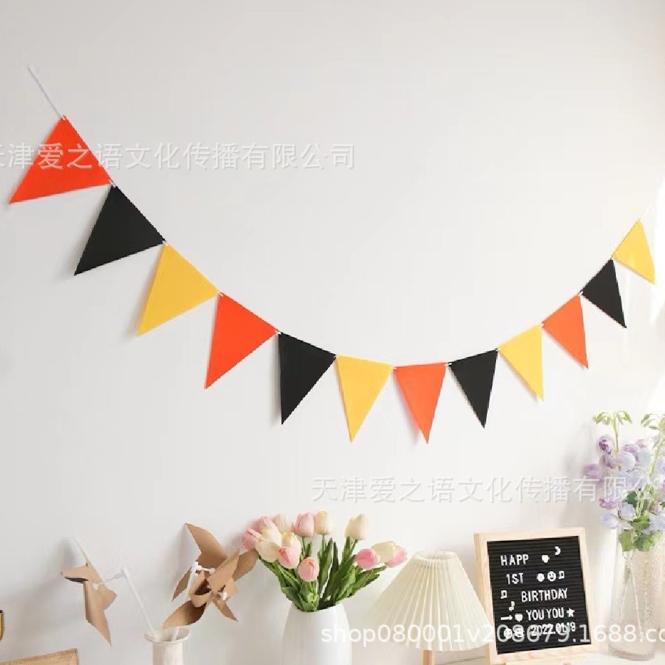 三角旗装饰毛毡彩旗生日派对拉花幼儿园生日圣诞节万圣节布置拉旗