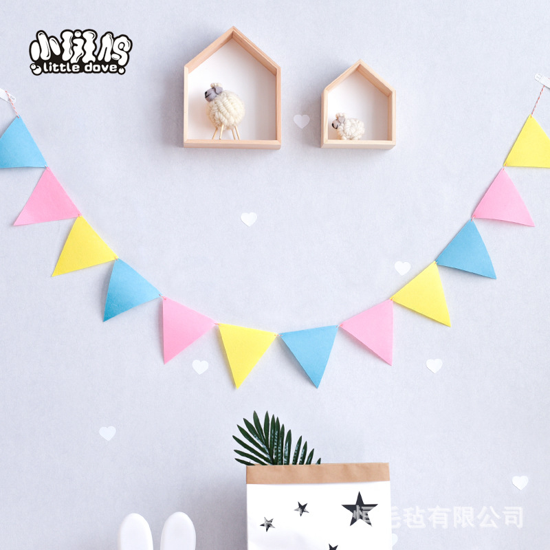 批发三角旗装饰毛毡彩旗生日派对拉花幼儿园万圣节圣诞节布置拉旗