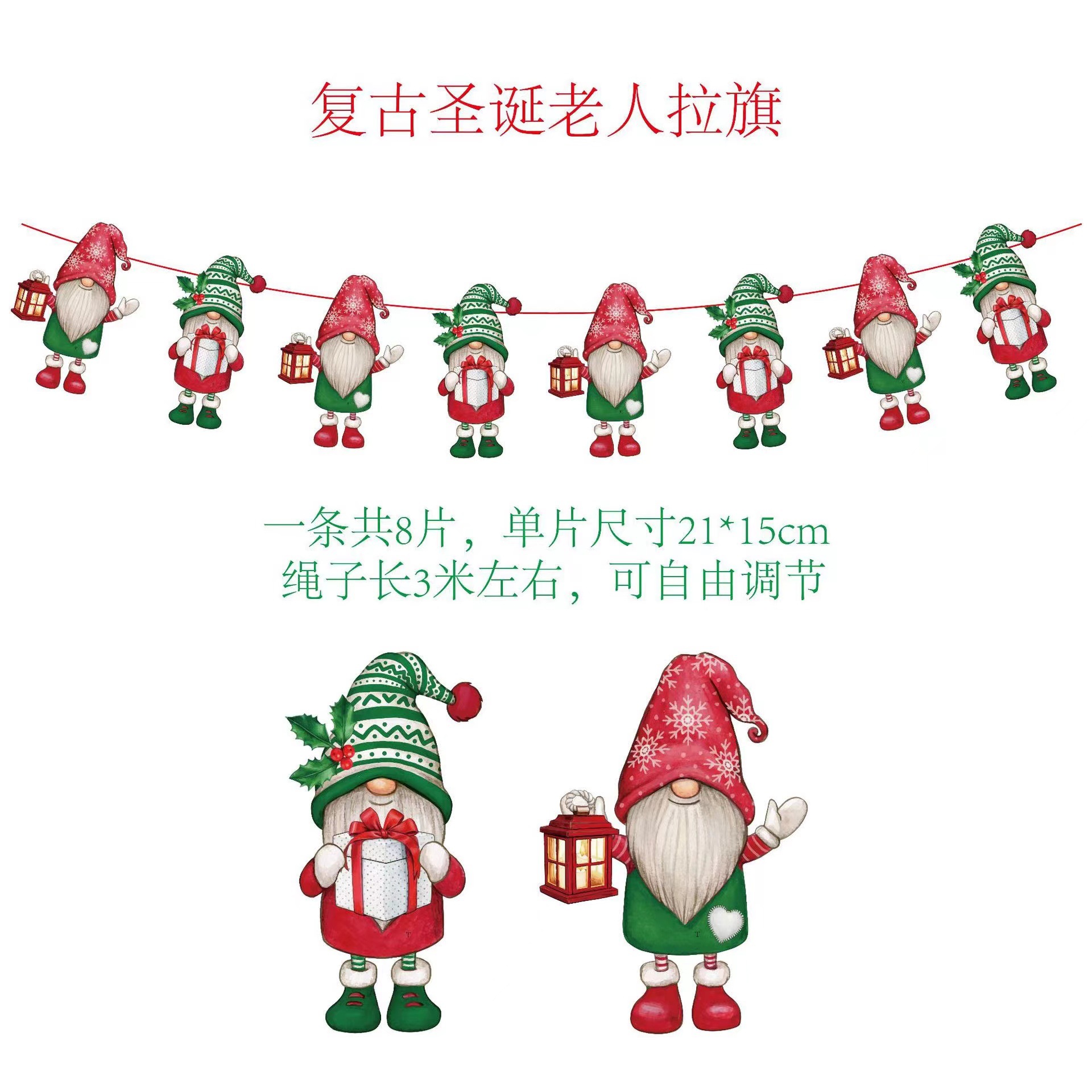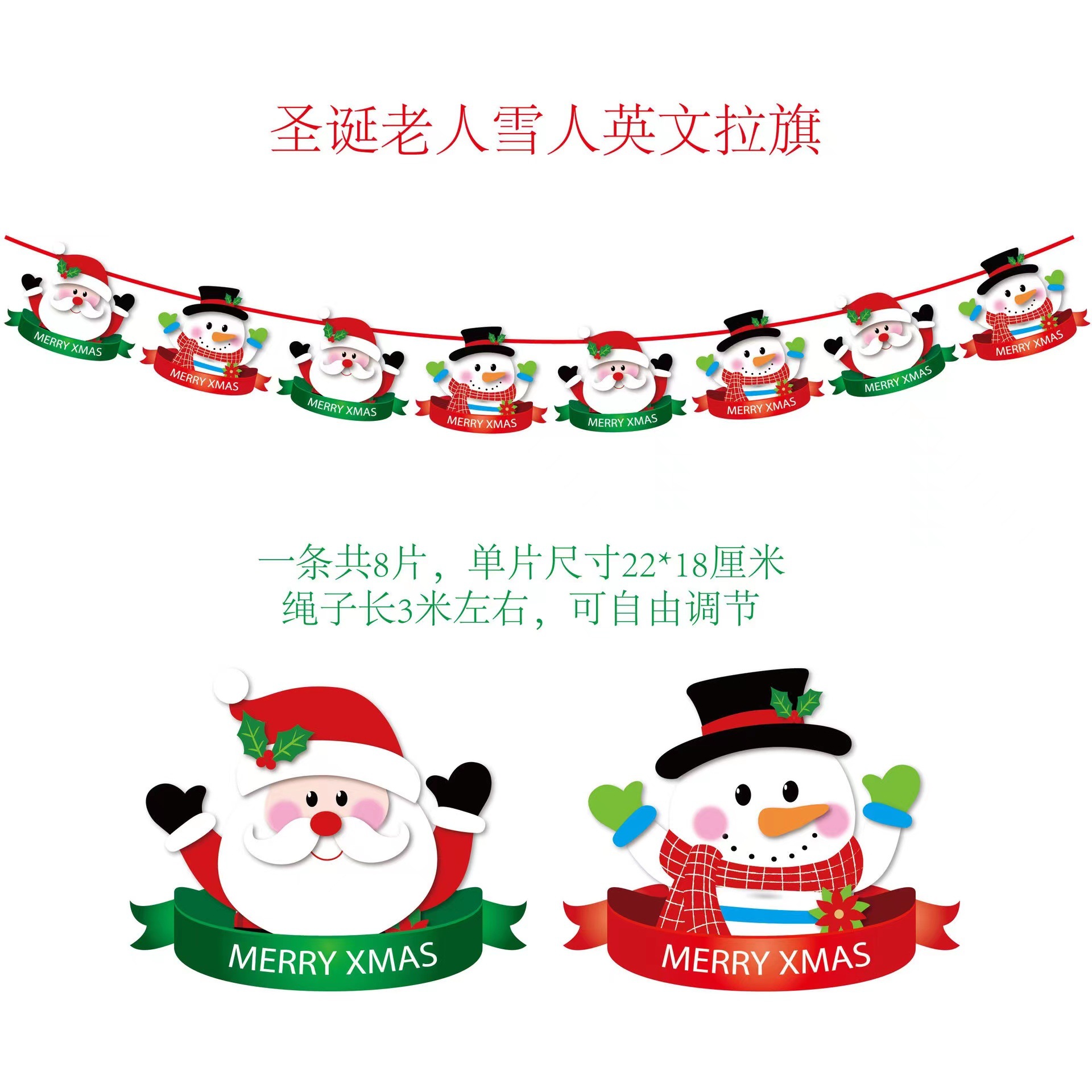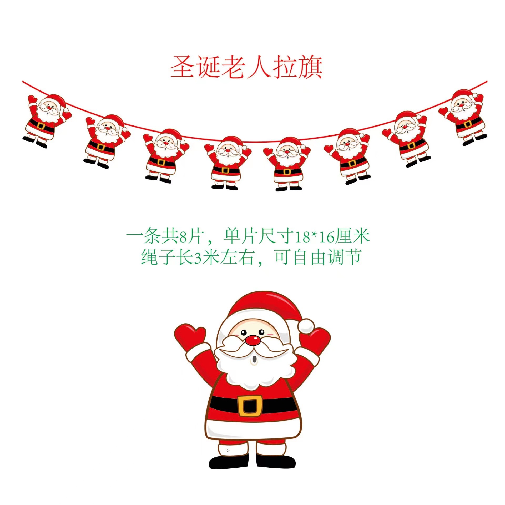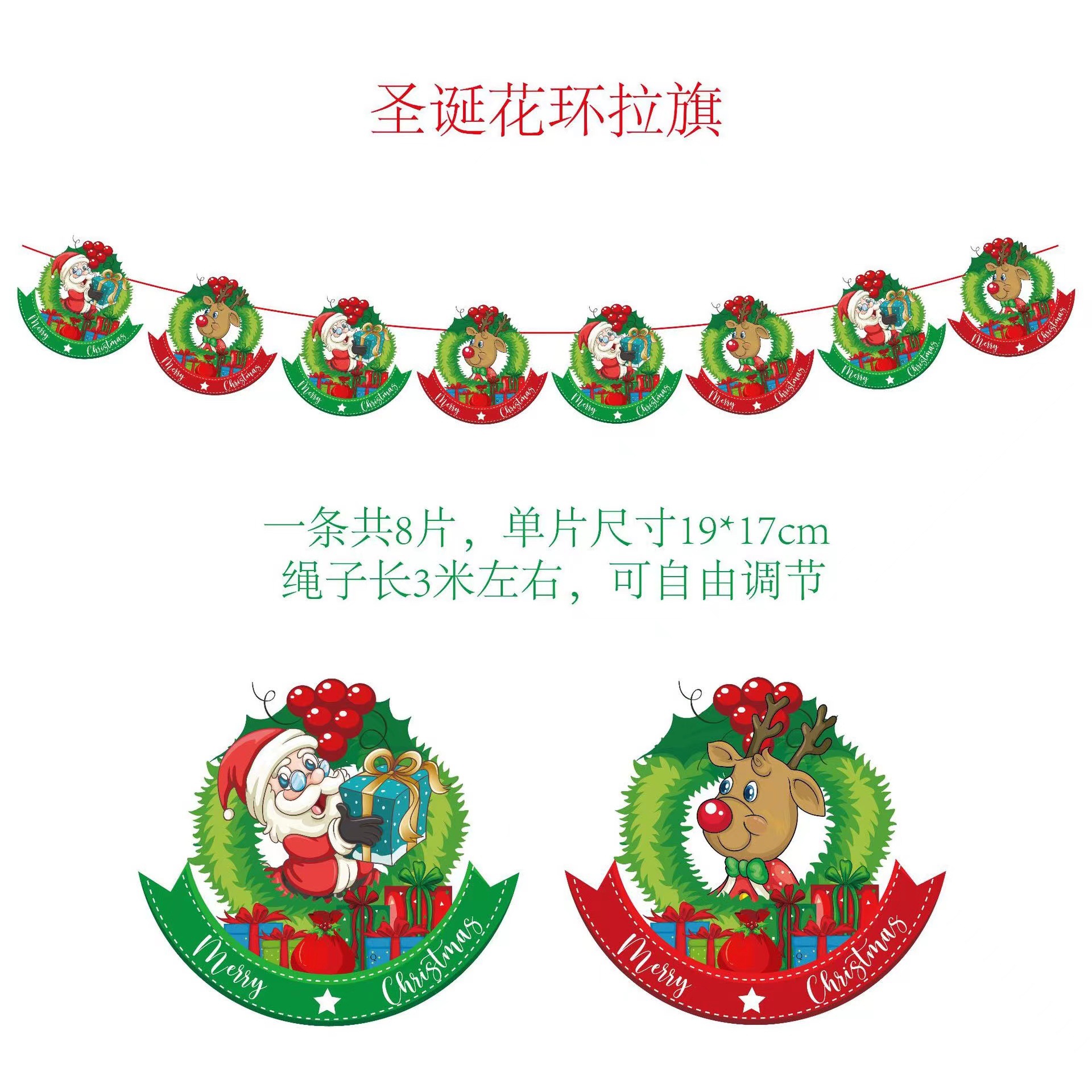 圣诞节纸质拉旗 圣诞节橱窗酒店场景装饰彩旗厂家 圣诞老人挂旗