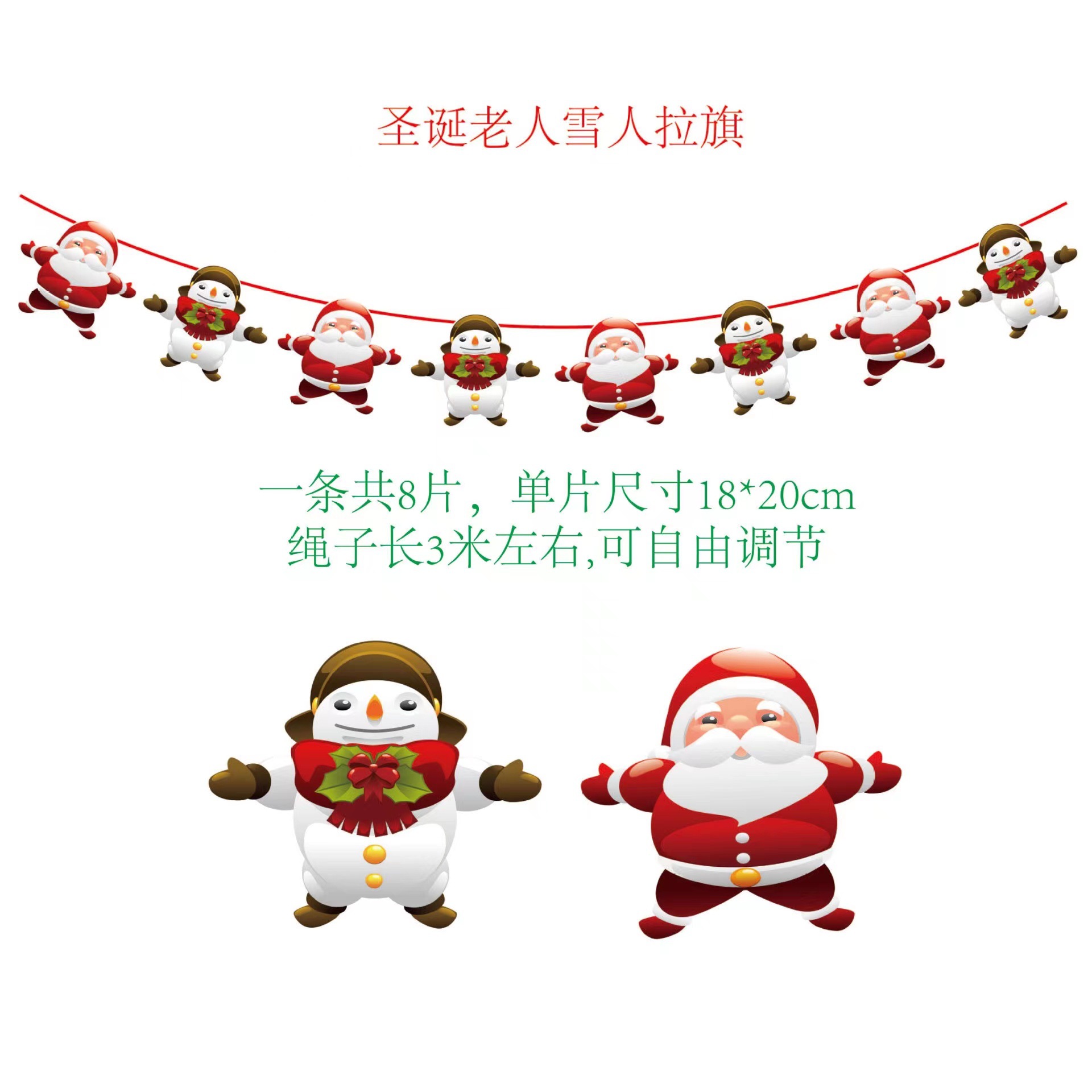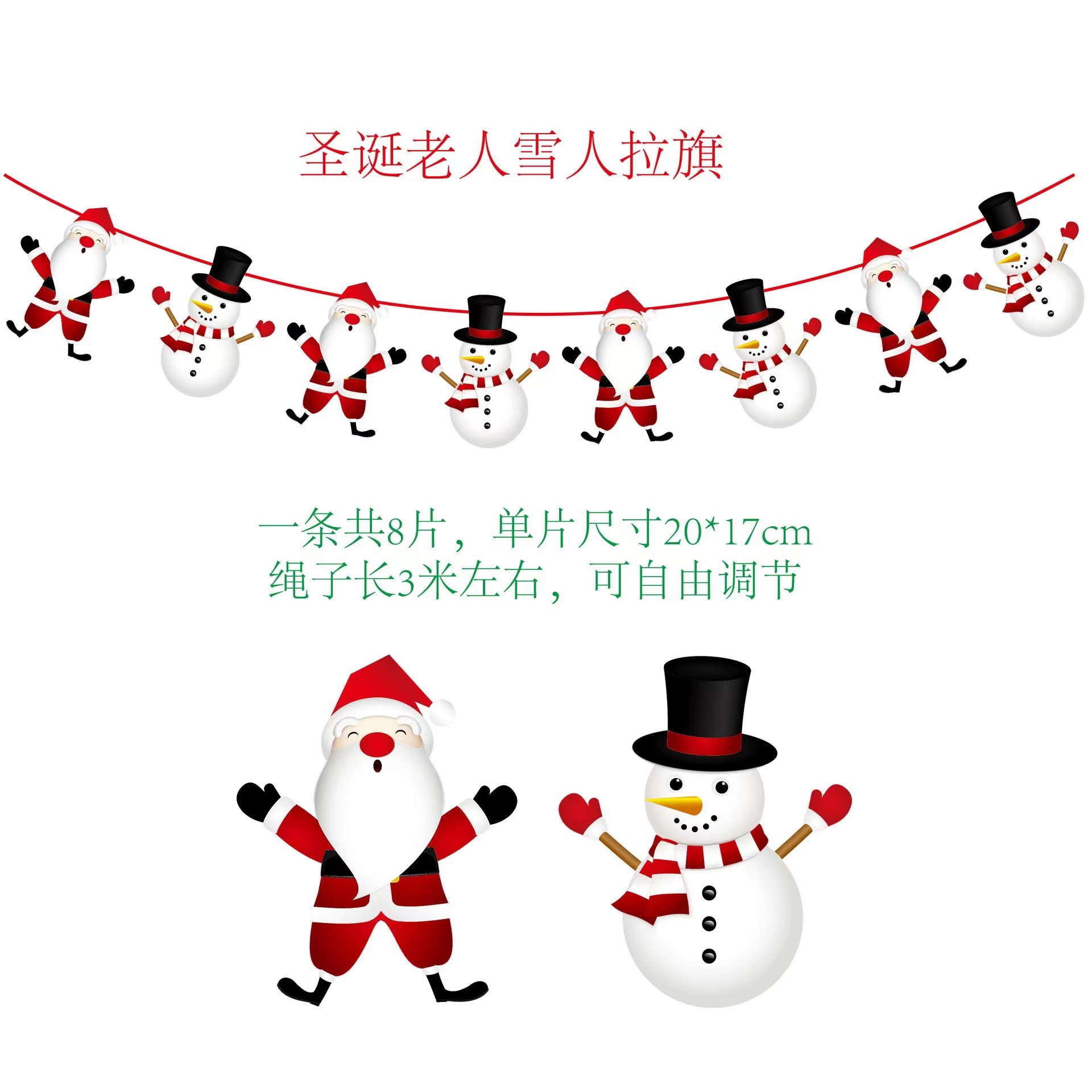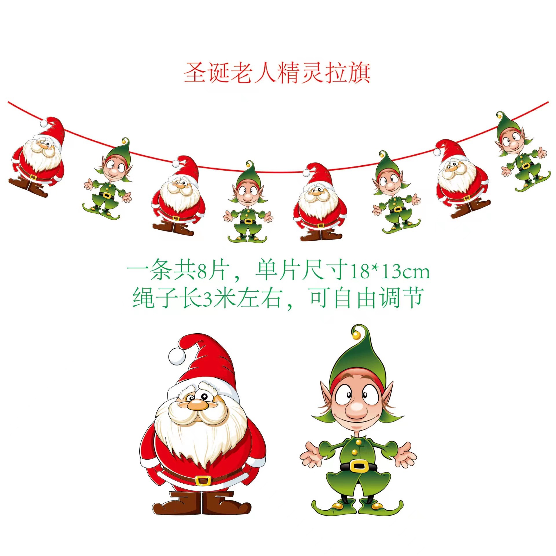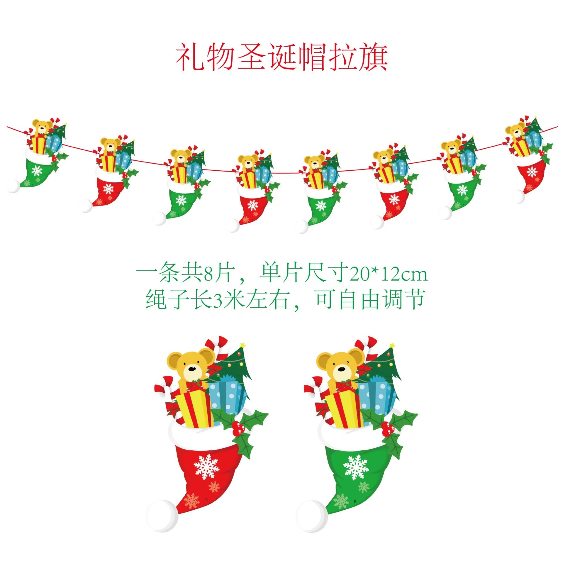 圣诞节纸质拉旗 圣诞节橱窗酒店场景装饰彩旗厂家 圣诞老人挂旗