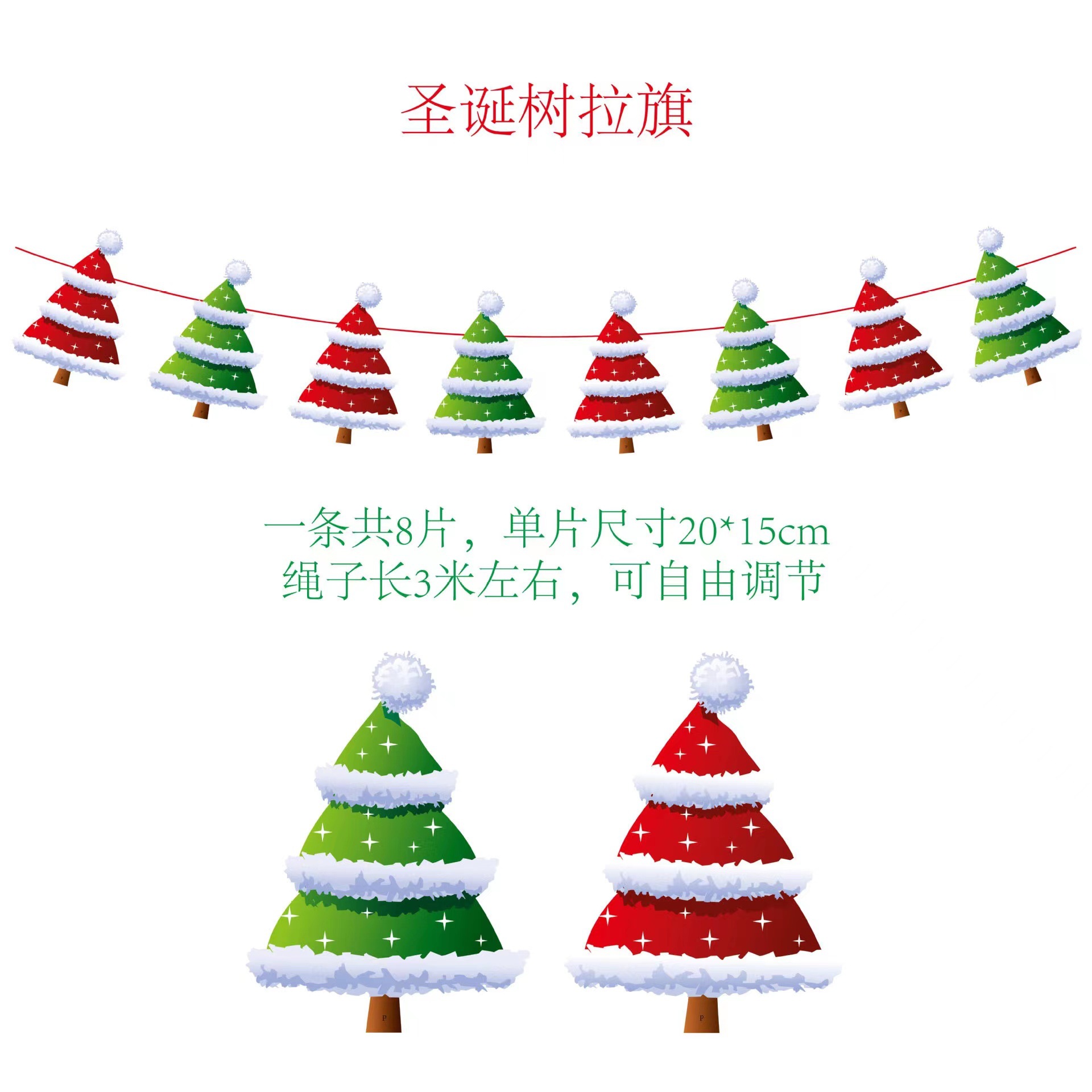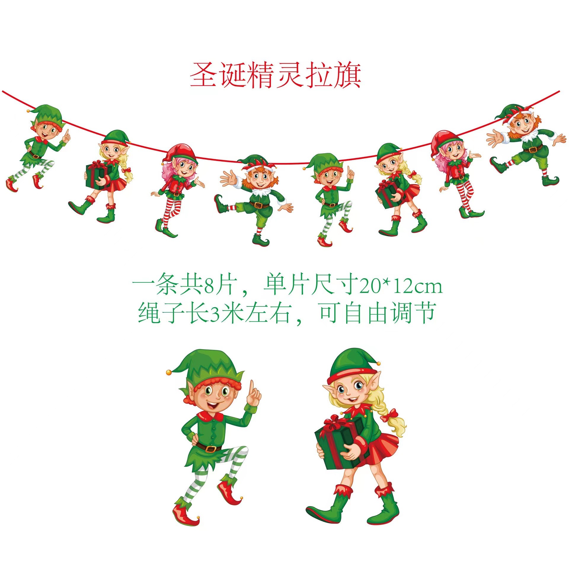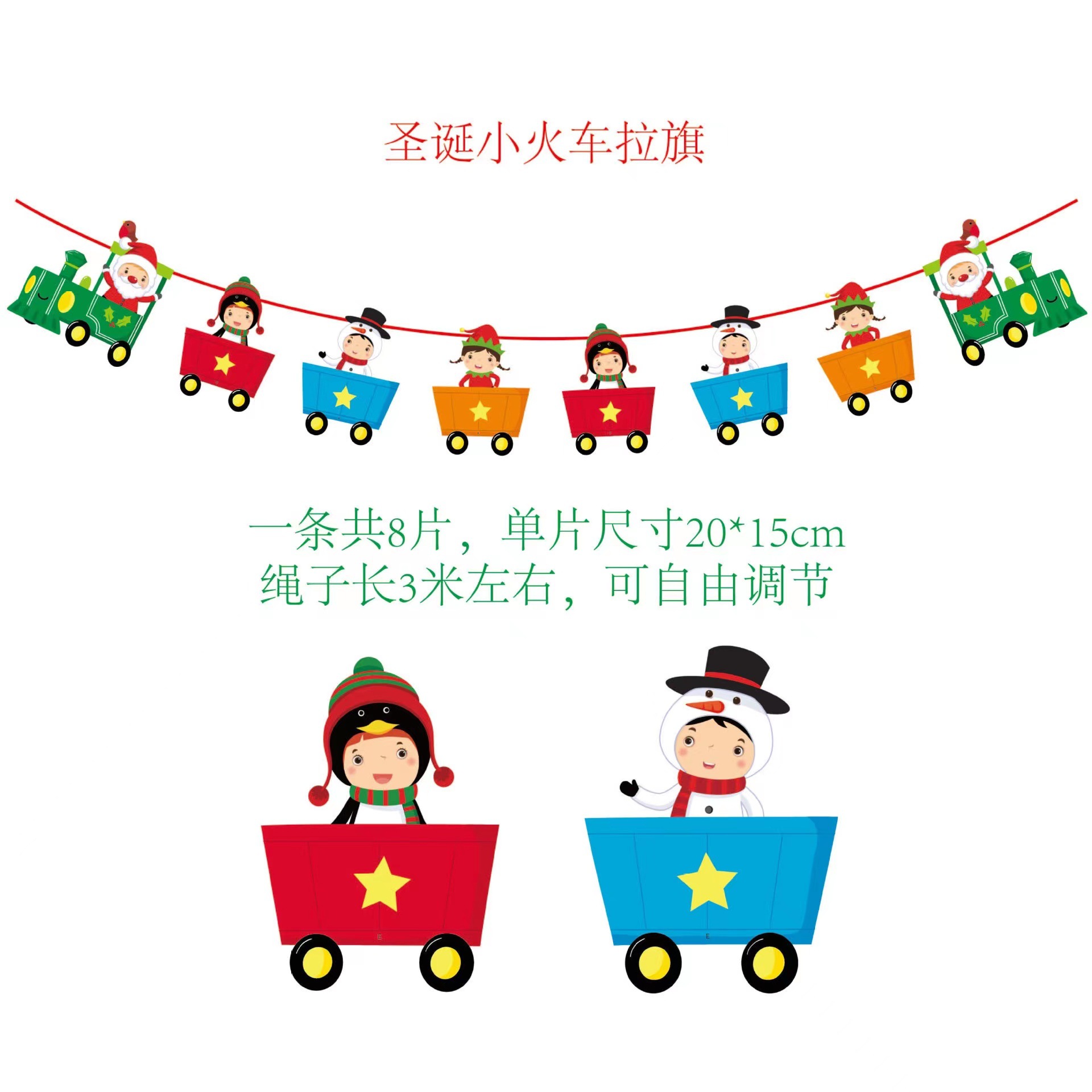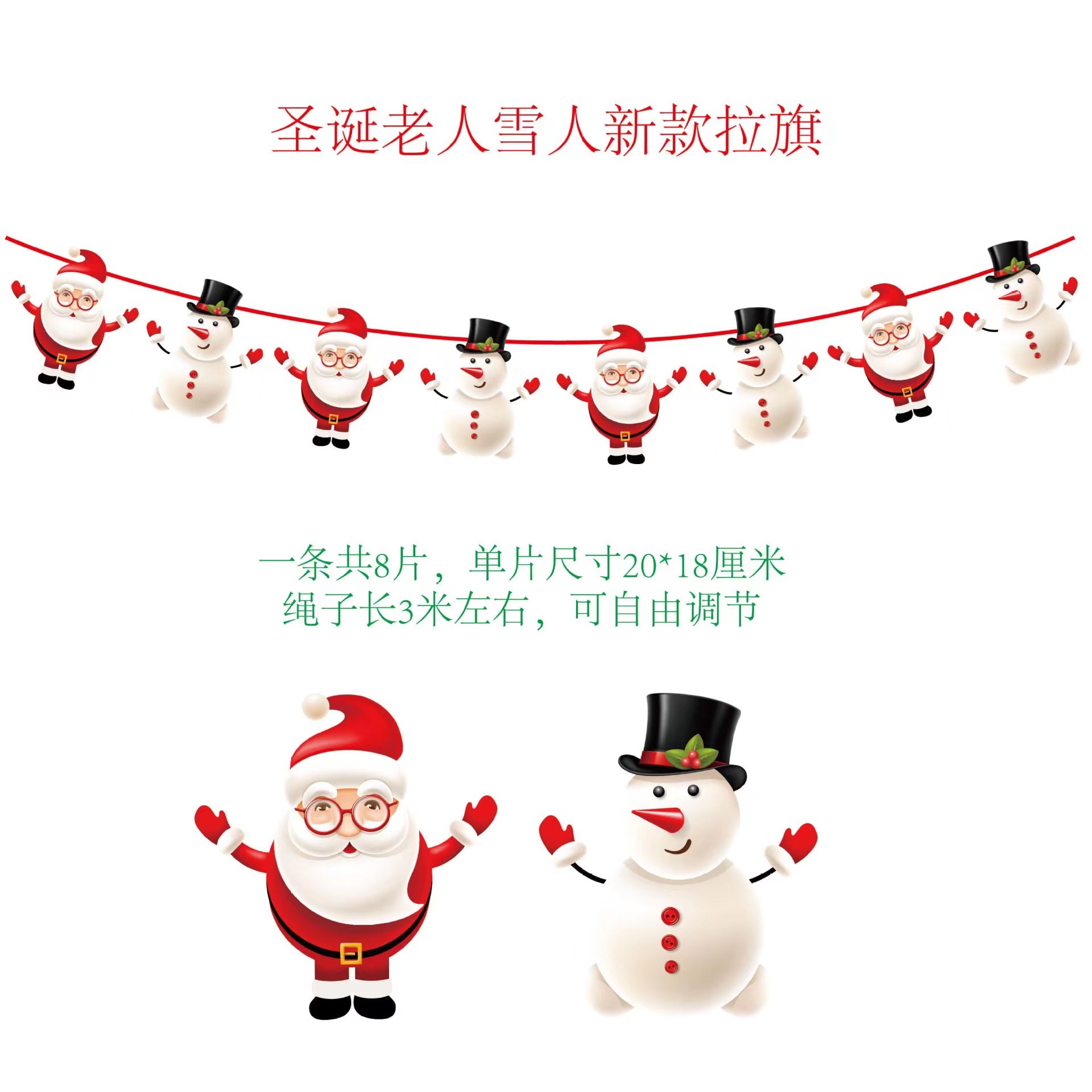 圣诞节纸质拉旗 圣诞节橱窗酒店场景装饰彩旗厂家 圣诞老人挂旗