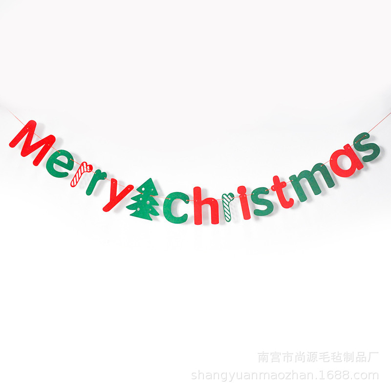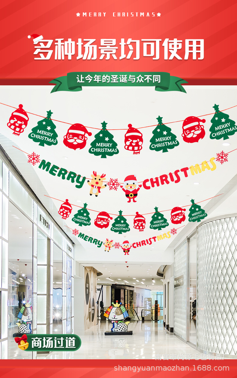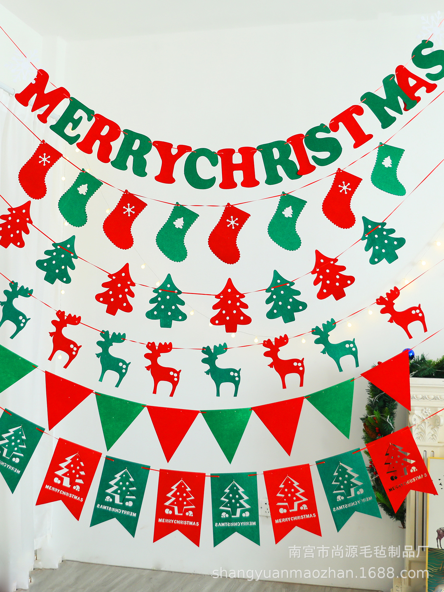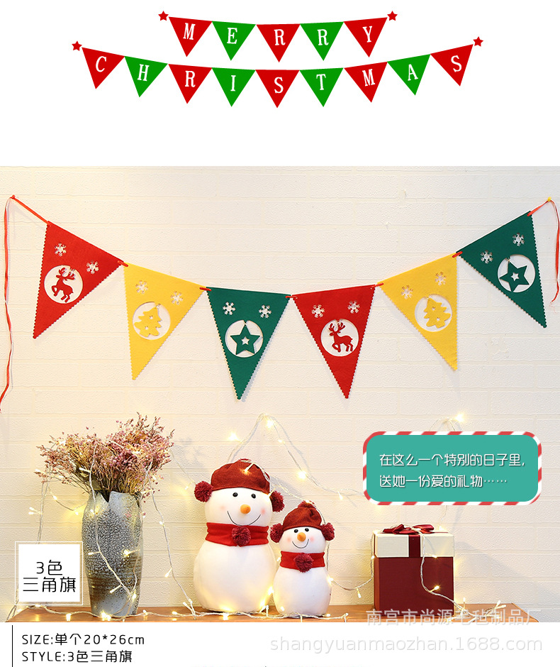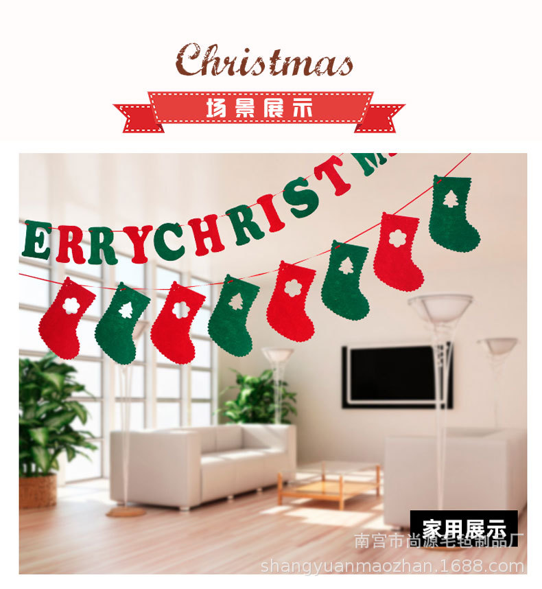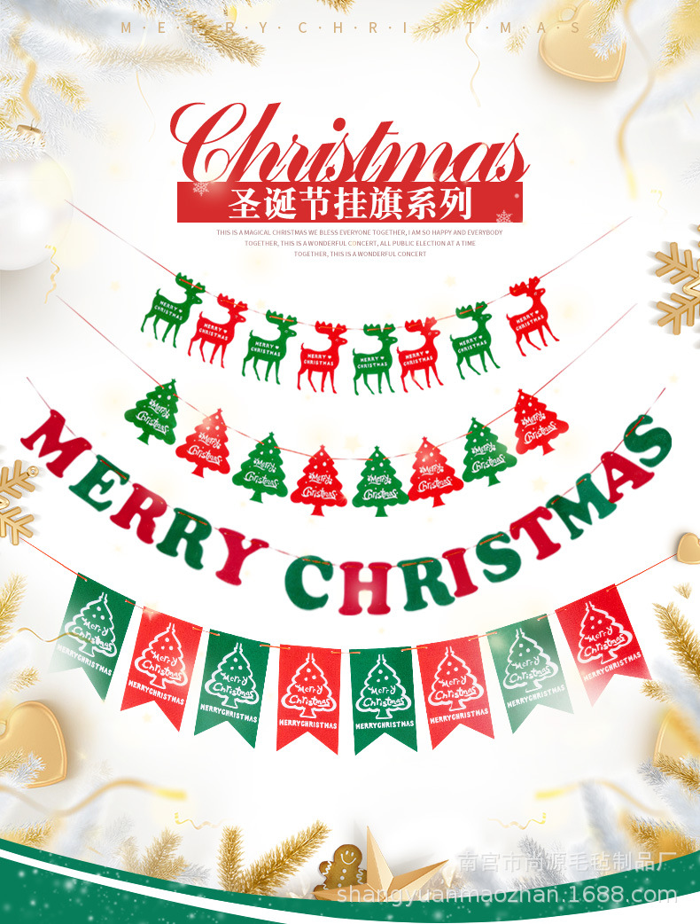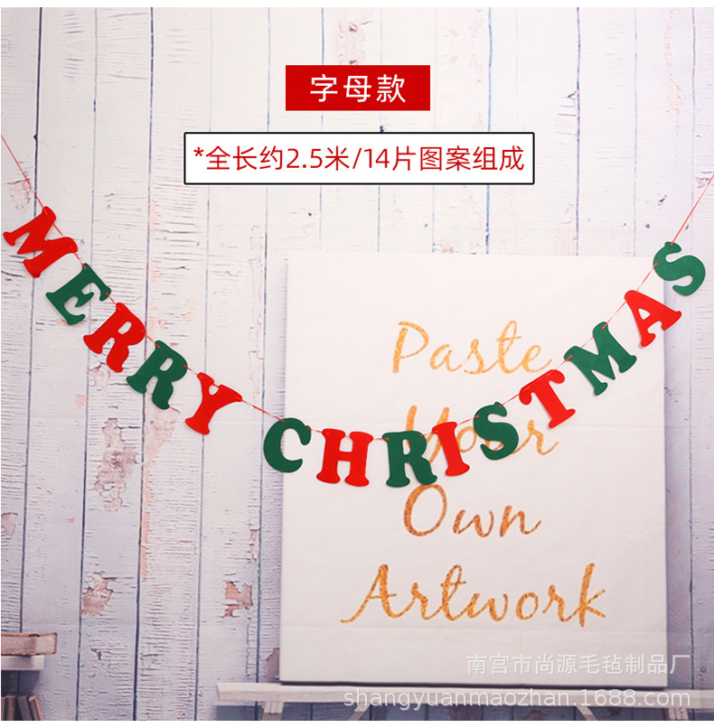 圣诞节拉旗吊旗毛毡圣诞派对字母彩旗挂旗无纺布圣诞装饰拉花横幅