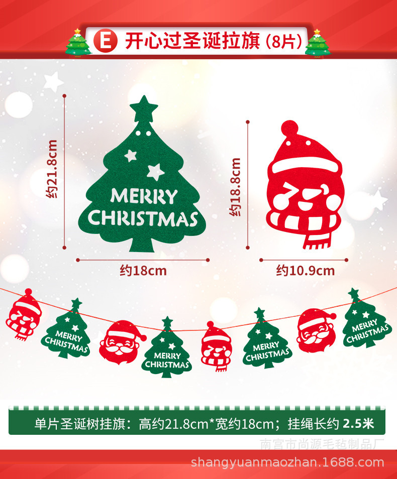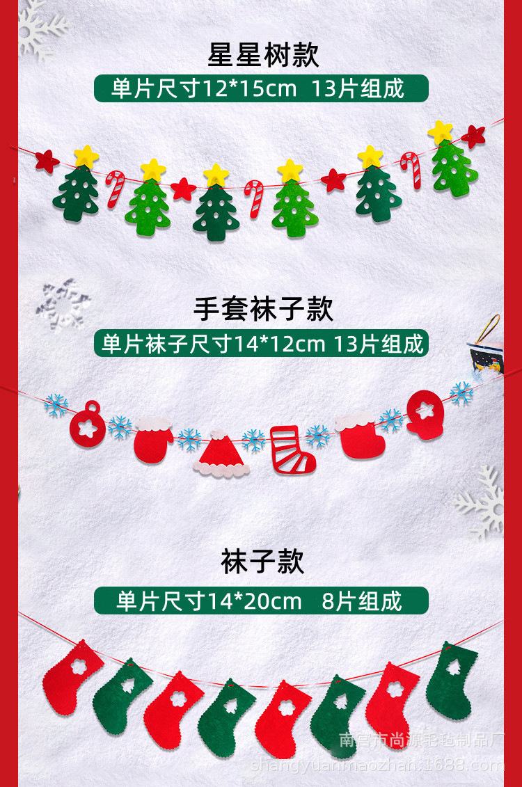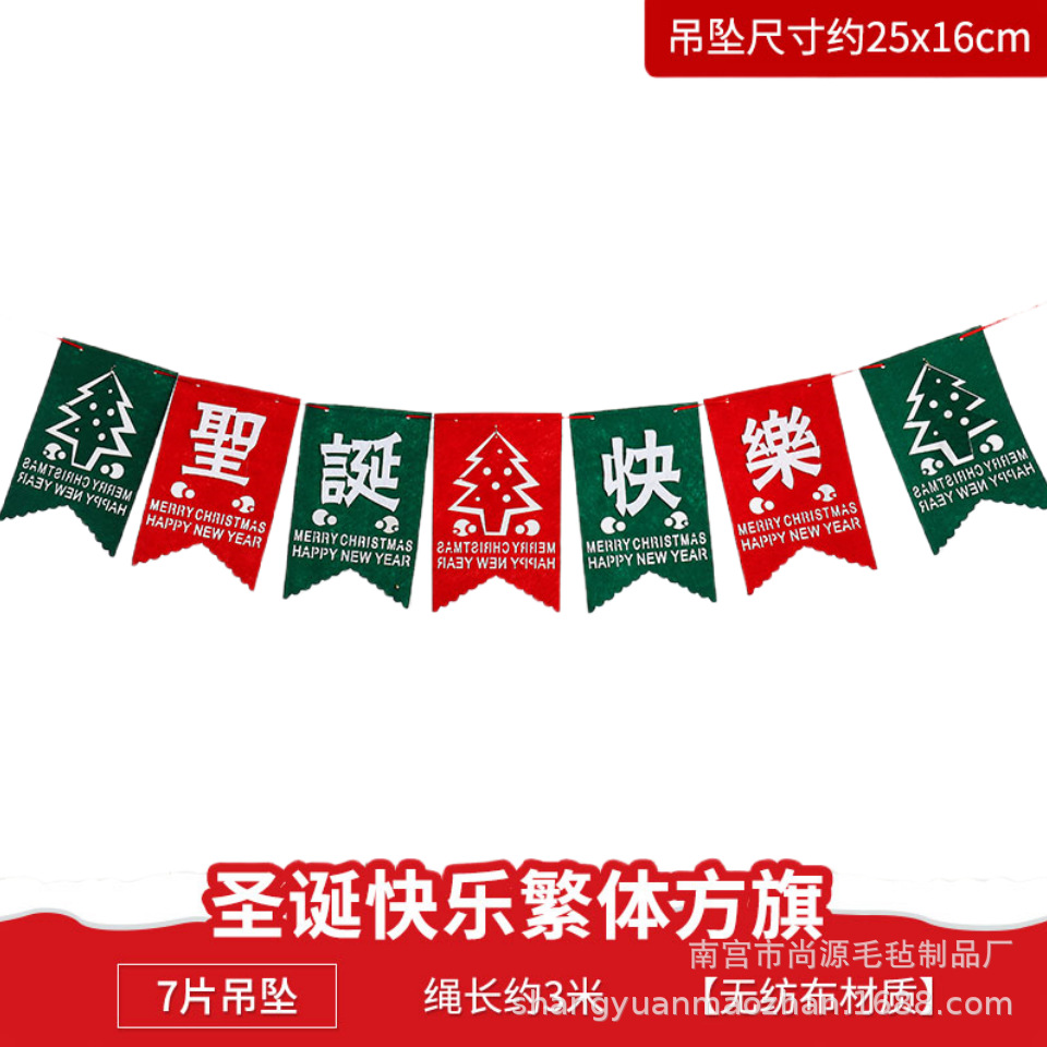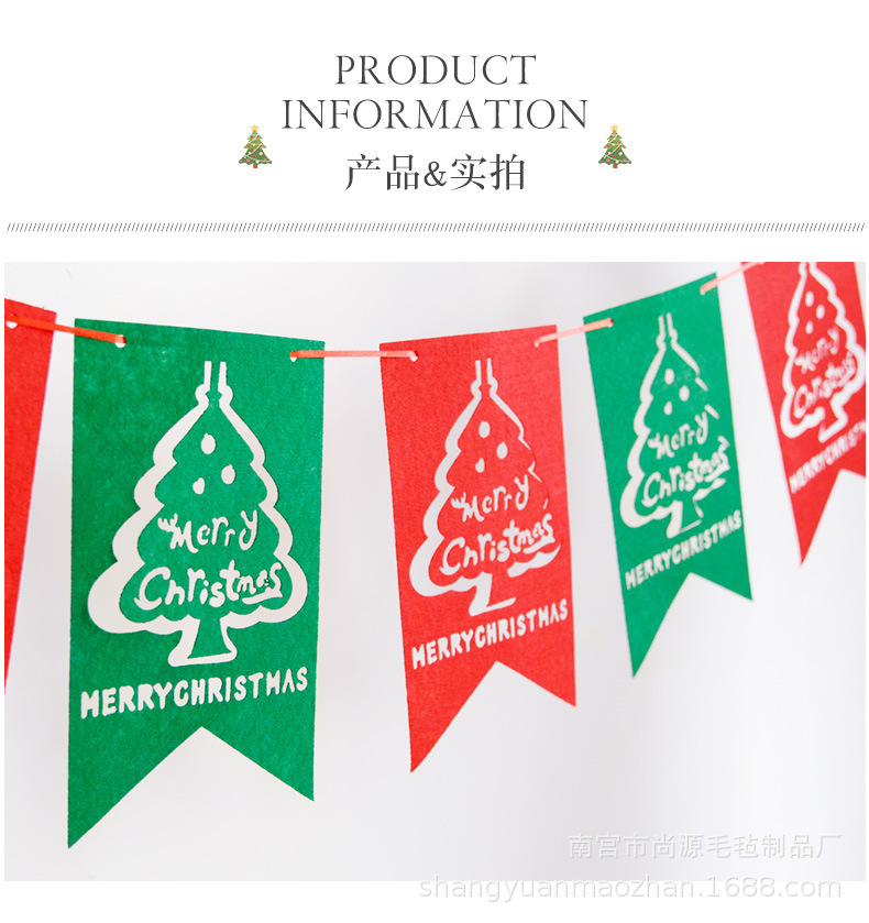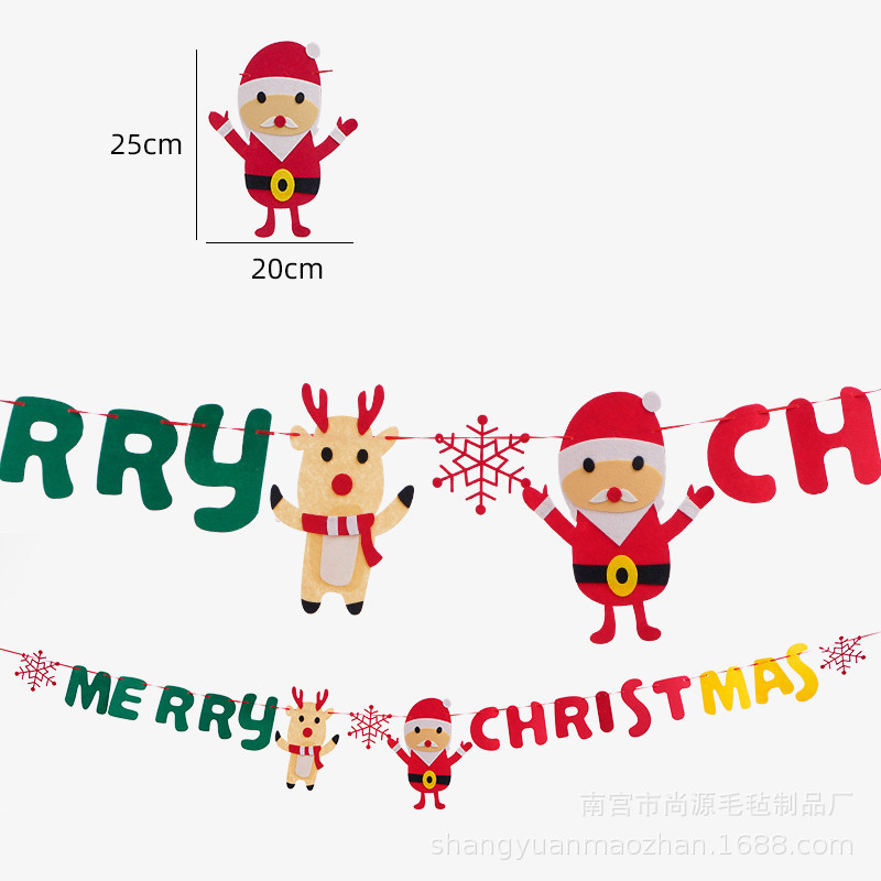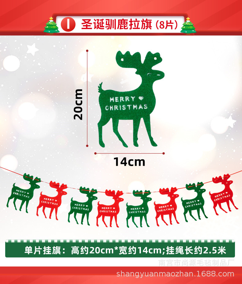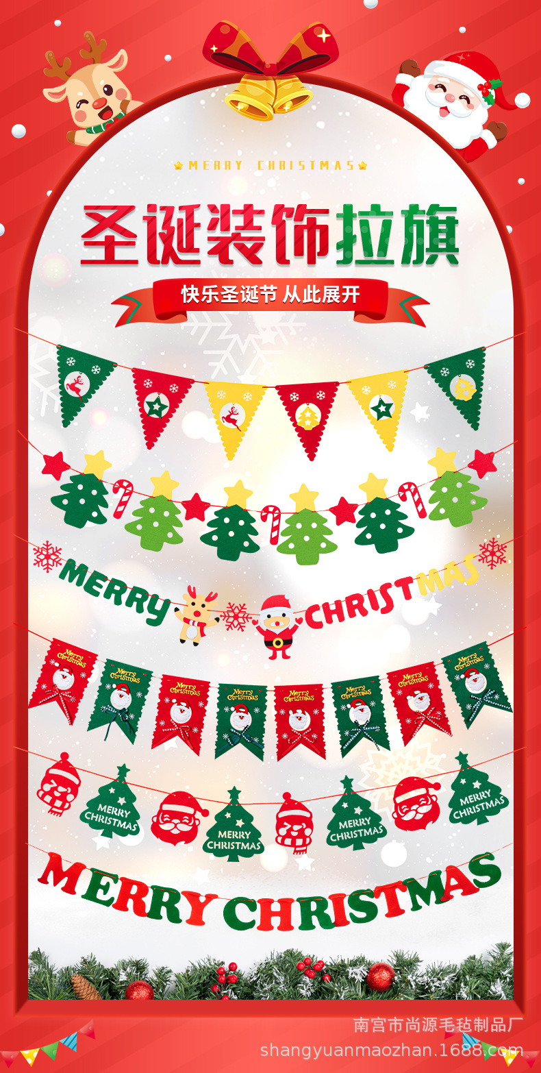 圣诞节拉旗吊旗毛毡圣诞派对字母彩旗挂旗无纺布圣诞装饰拉花横幅