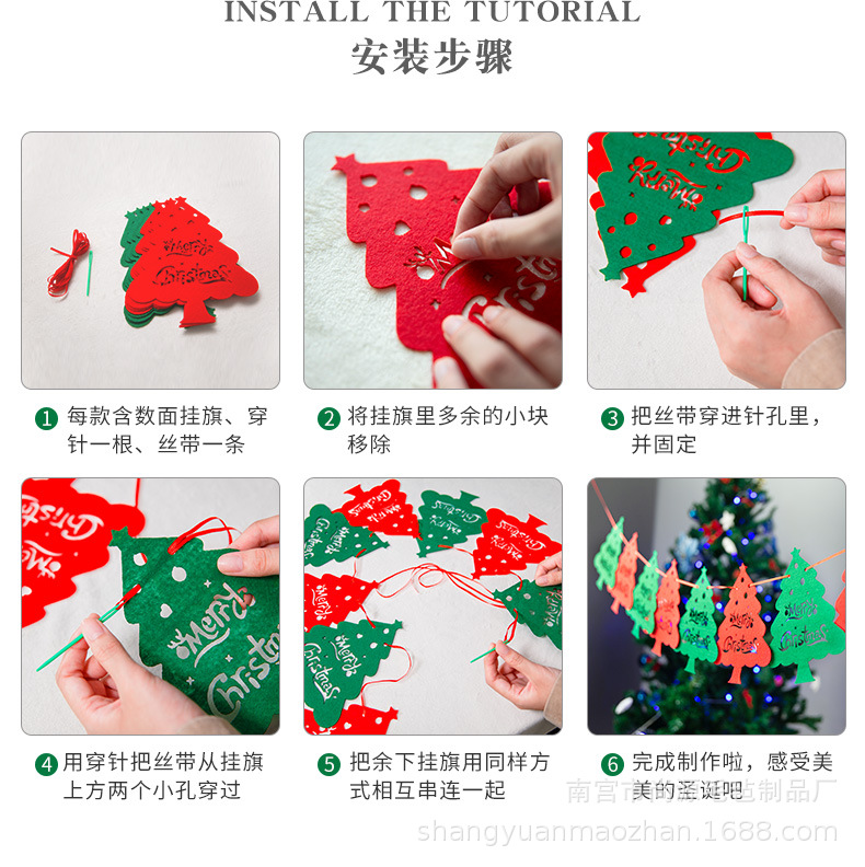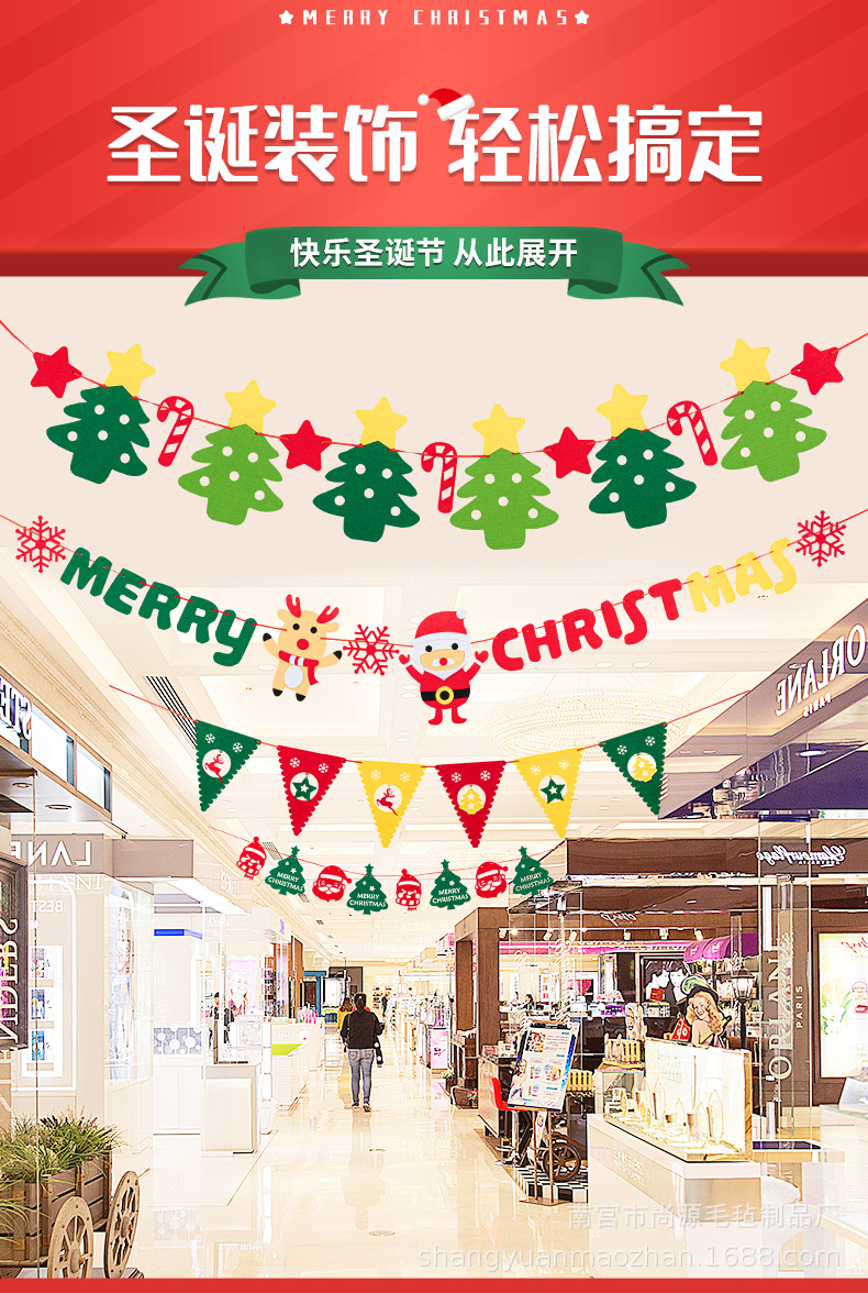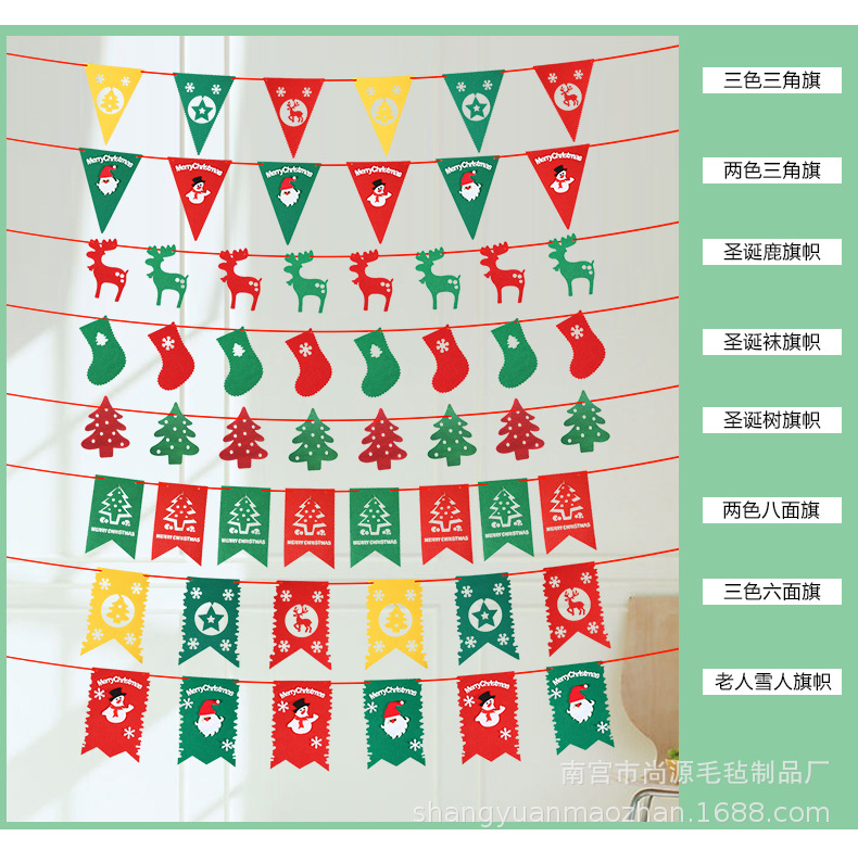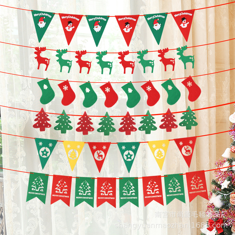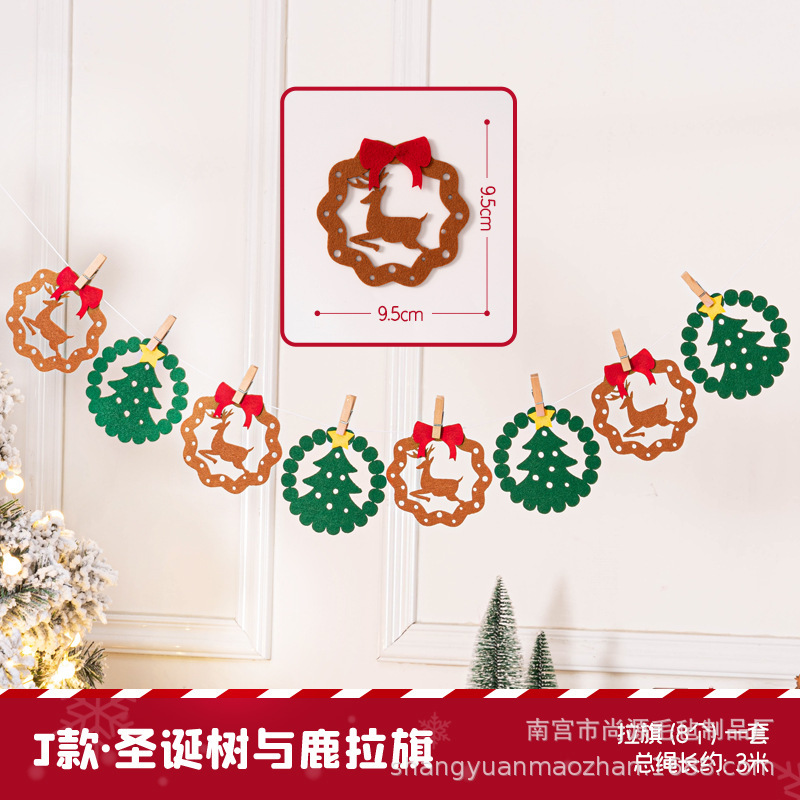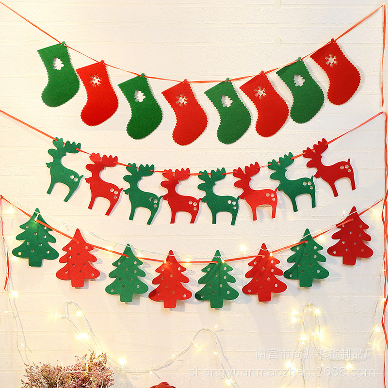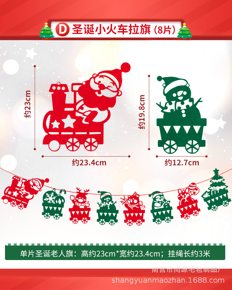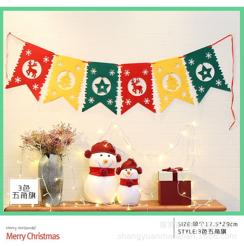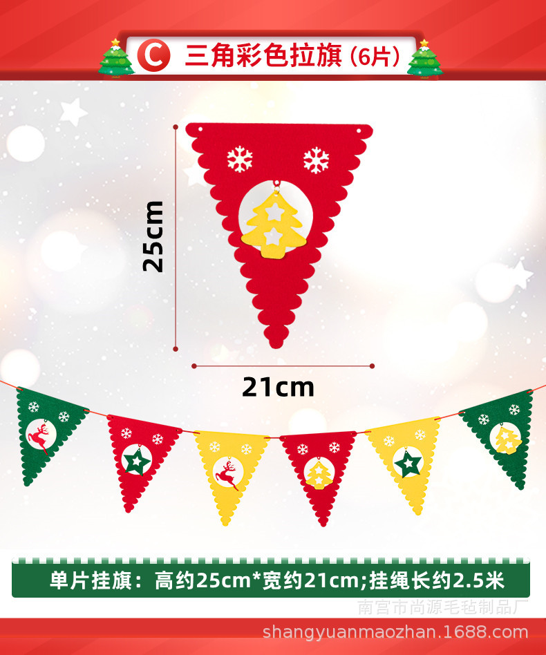 圣诞节拉旗吊旗毛毡圣诞派对字母彩旗挂旗无纺布圣诞装饰拉花横幅