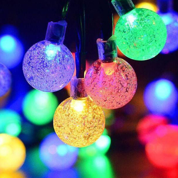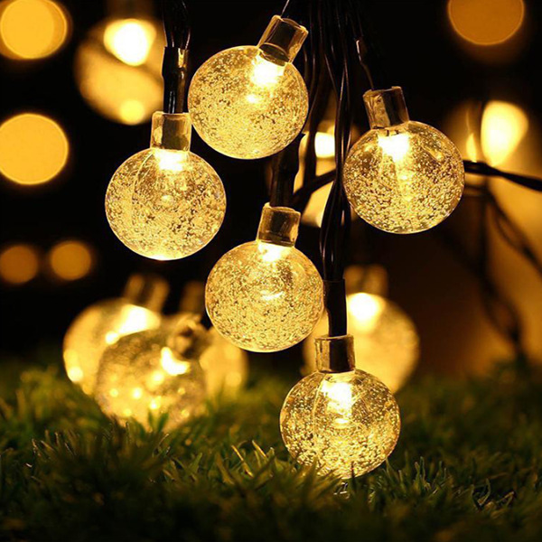 太阳能灯串气泡球防水户外庭院遥控串灯圣诞树灯串水晶球彩灯串