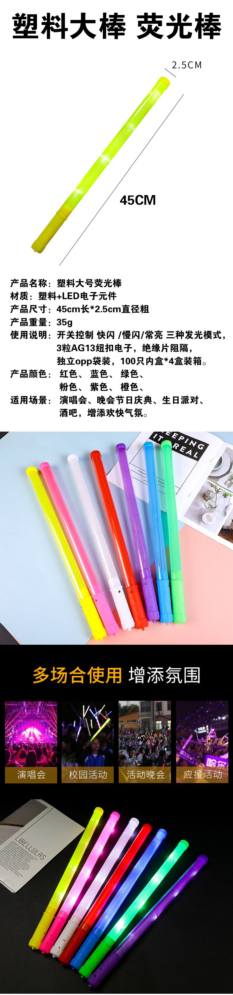 厂家批发大号LED荧光棒发光棒闪光应援电子棒 演唱会聚会助威道具