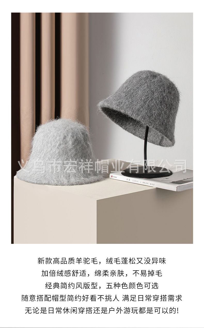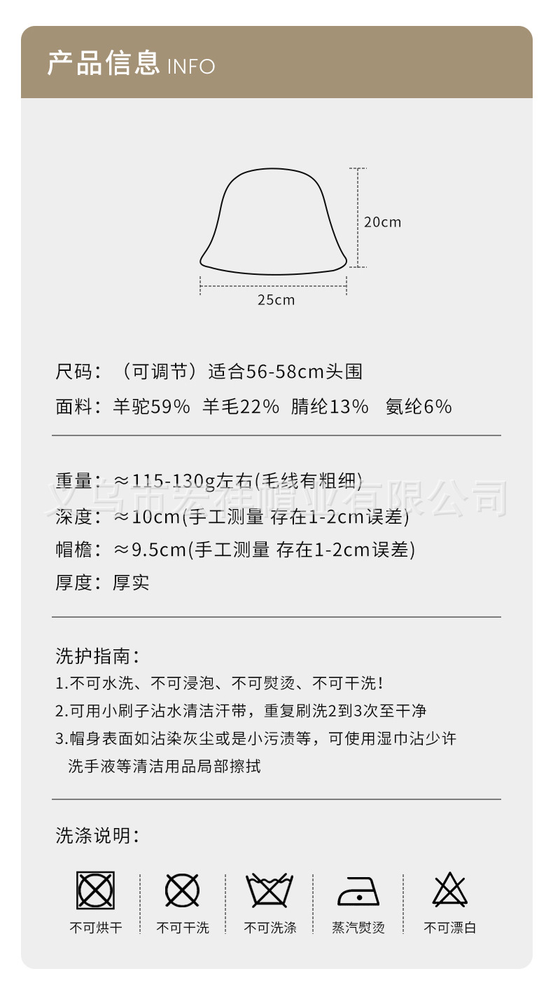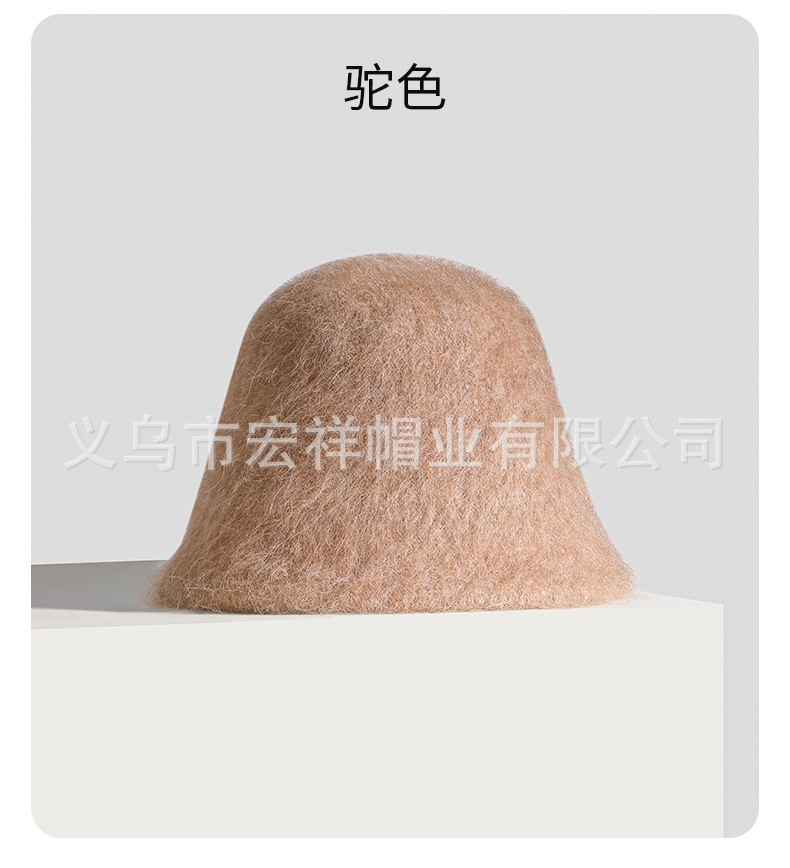 日系驼羊毛渔夫帽子女秋冬百搭显脸小盆帽复古洋气高品质水桶帽潮