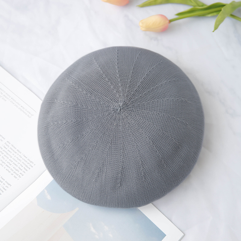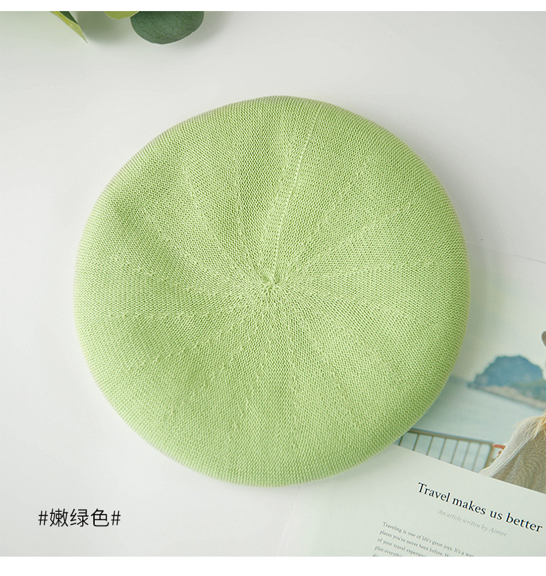 网眼针织贝雷帽夏季复古时尚画家帽日系帽子女透气蓓蕾帽批发定